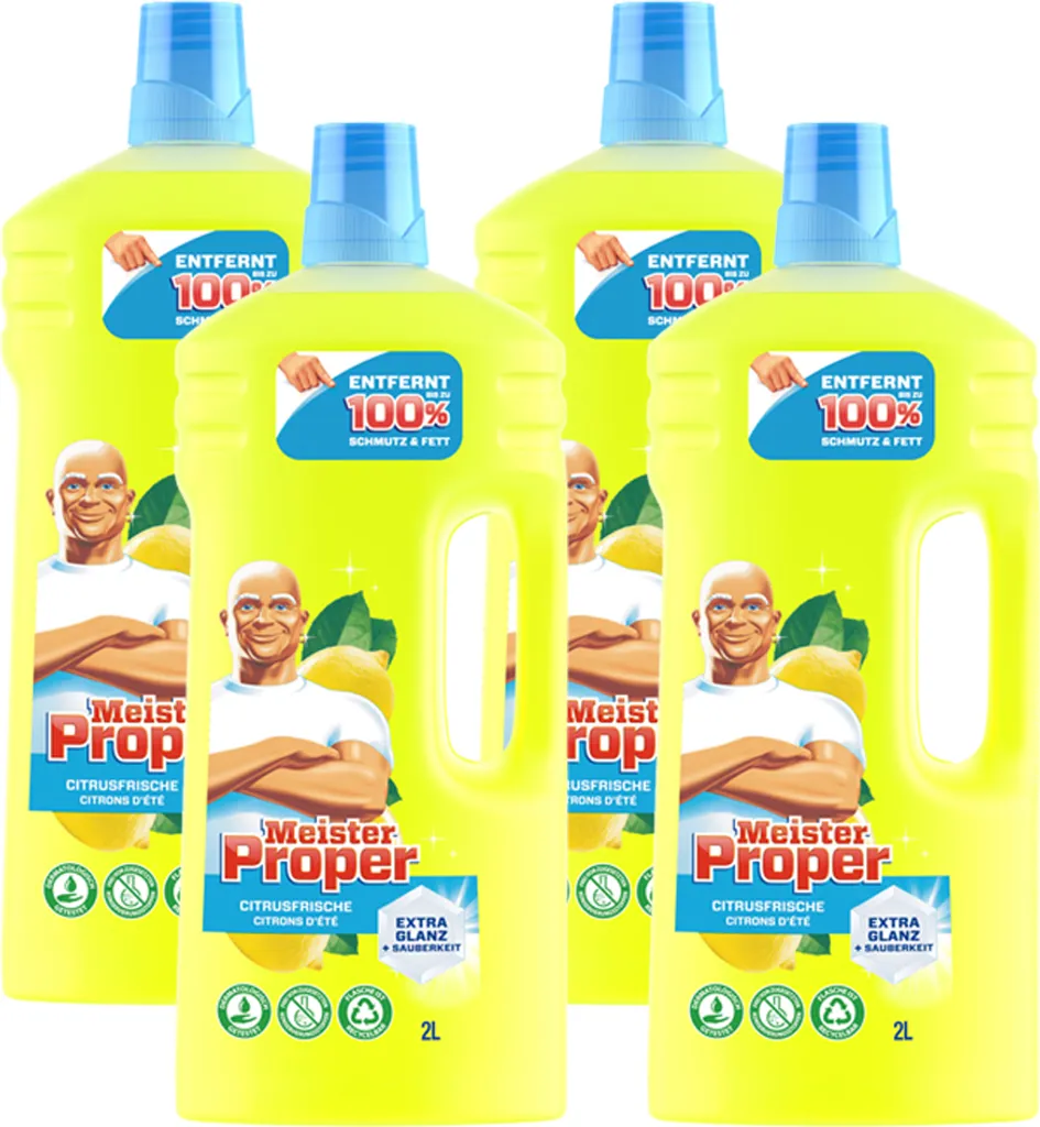 | Zusätzliche Varianten | 4 x Meister Proper Citrusfrische leistungsstarker Allzweckreiniger 4 x 2 Liter, Meister Proper Citrusfrische leistungsstarker Allzweckreiniger 2l, Meister Proper Frühlingserwachen – leistungsstarker Allzweckreiniger 2l |