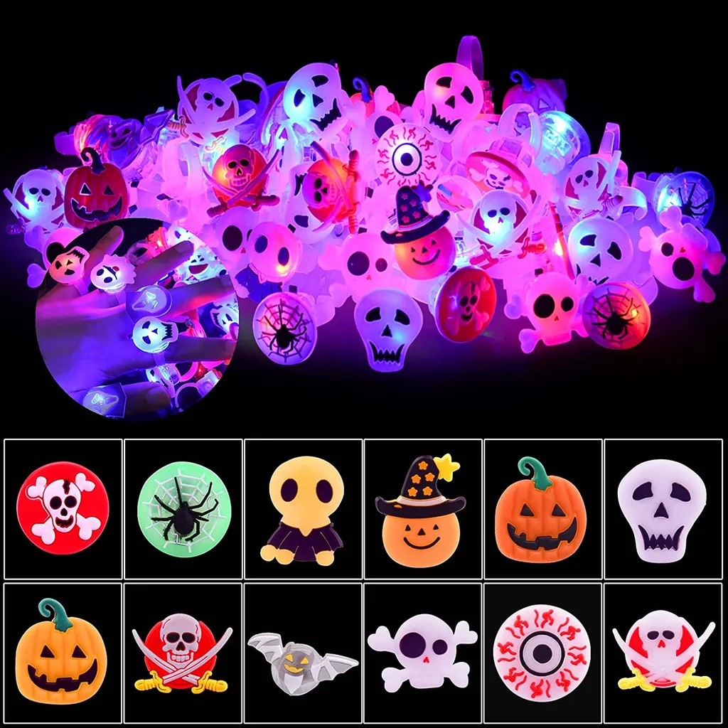 50 Stück Halloween-Partygeschenke Für Kinder, LED-Blinkringe, Leuchtende Halsketten Und Broschen Für Party-Dekorationen, Halloween-Partyzubehör, Kein Süßigkeitenhalloween Leckereien, Goodie-Tütenfüller
