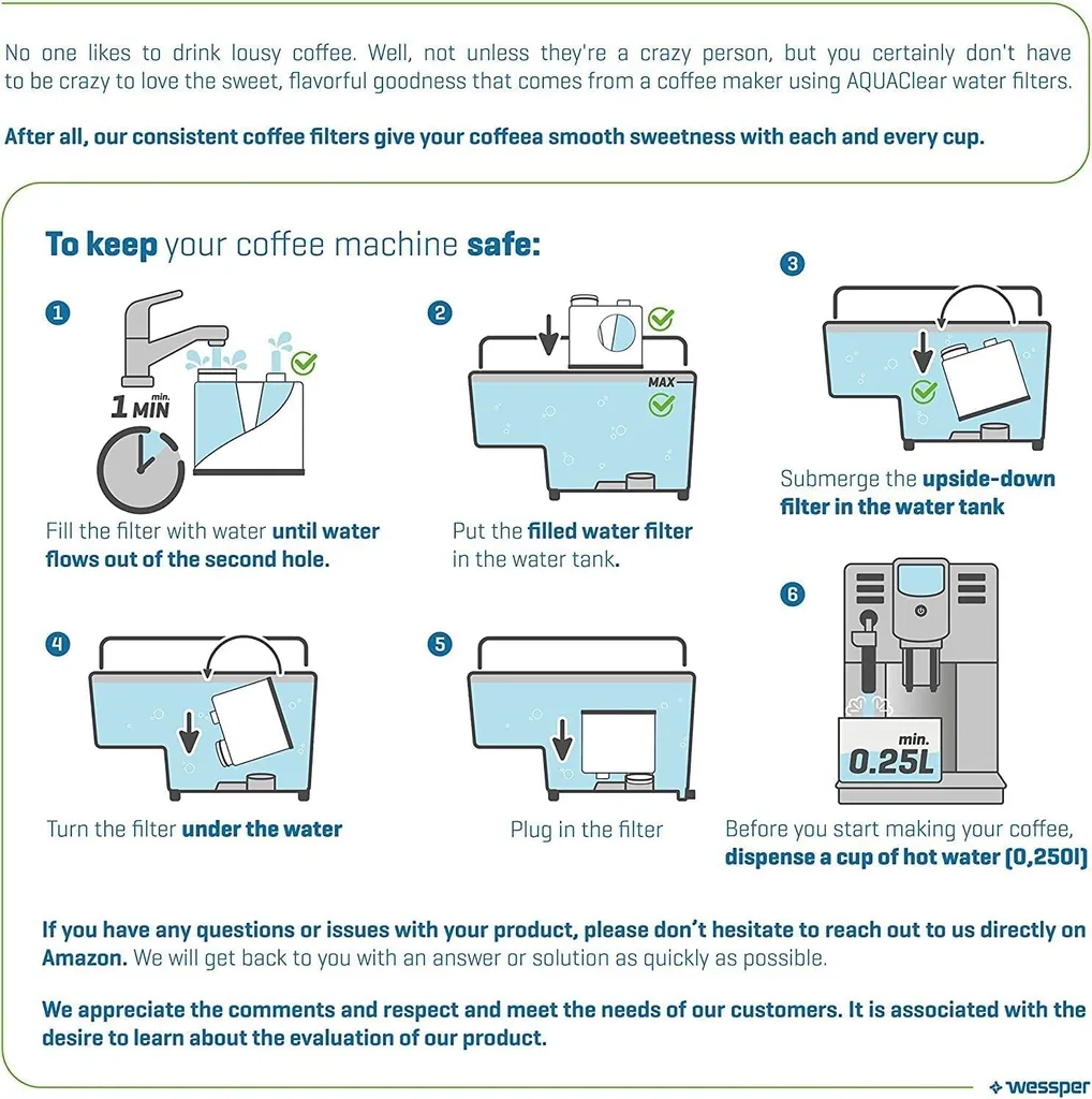 Der AquaClear Filter sorgt dafür, dass nur gefiltertes reines Wasser in die Kaffeemaschine gelangen kann, wodurch der Ärger des häufigen Betriebs entfällt und der Kaffee langsam genossen wird.