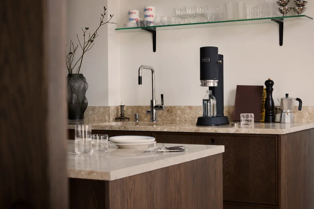 Der Carbonator Pro ist aus hochwertigsten Materialien gefertigt. Im Inneren sorgen Dämpfer und Gasfedern für sanfte Bewegungen und damit für ein angenehmes, reibungsloses Nutzererlebnis. Der Gummifuß der Maschine schützt deine Küchenzeile zudem vor Kratzern und sorgt für einen sicheren Stand.