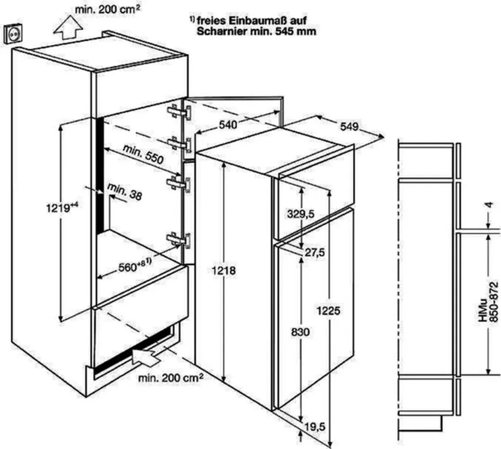 - Einbaumaße HxBxT (mm): 1225x560x550