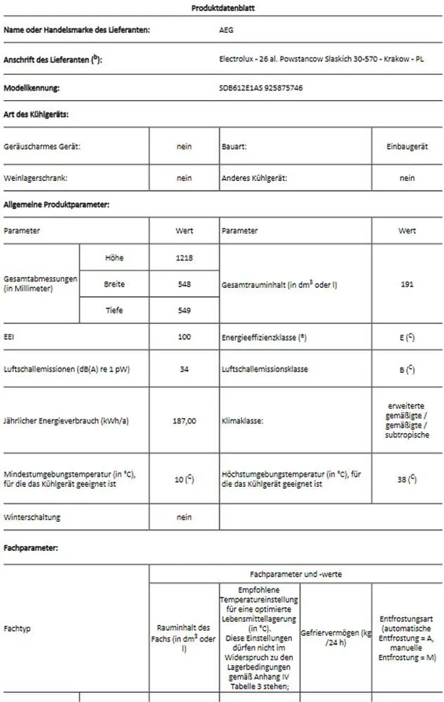 - Gesamtnutzinhalt 191L, davon Kühlfächer 147L, Gefrierfach 44L