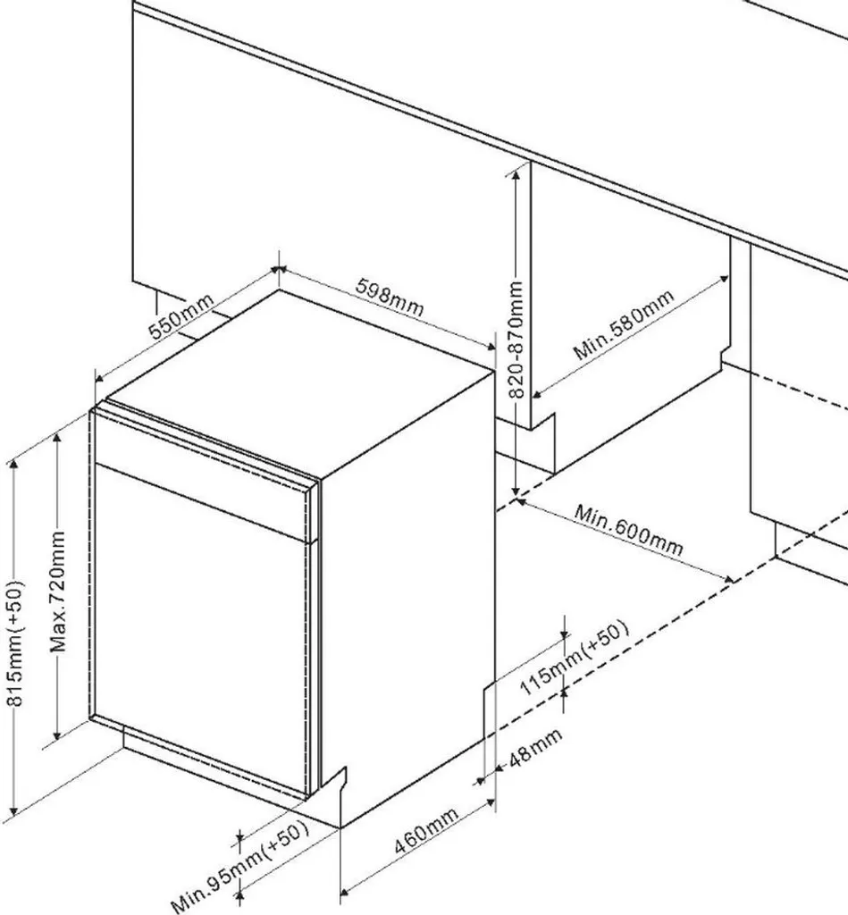 Nische (HxBxT): 820-870 x 450 x min. 580 mm