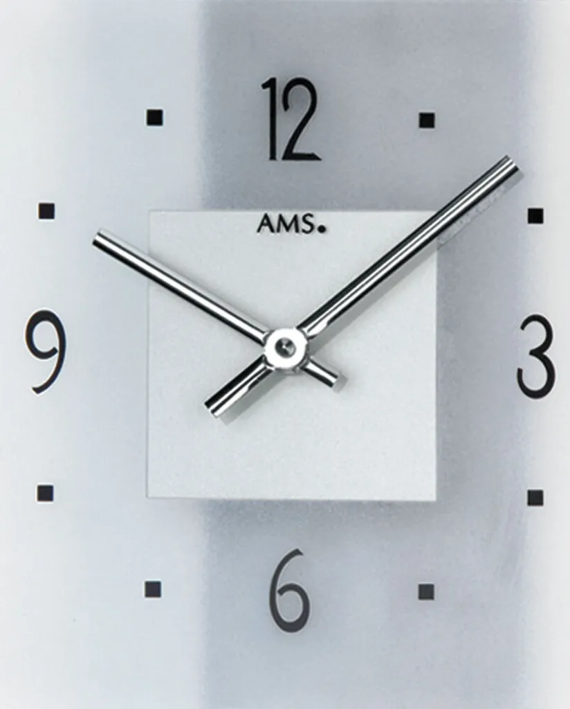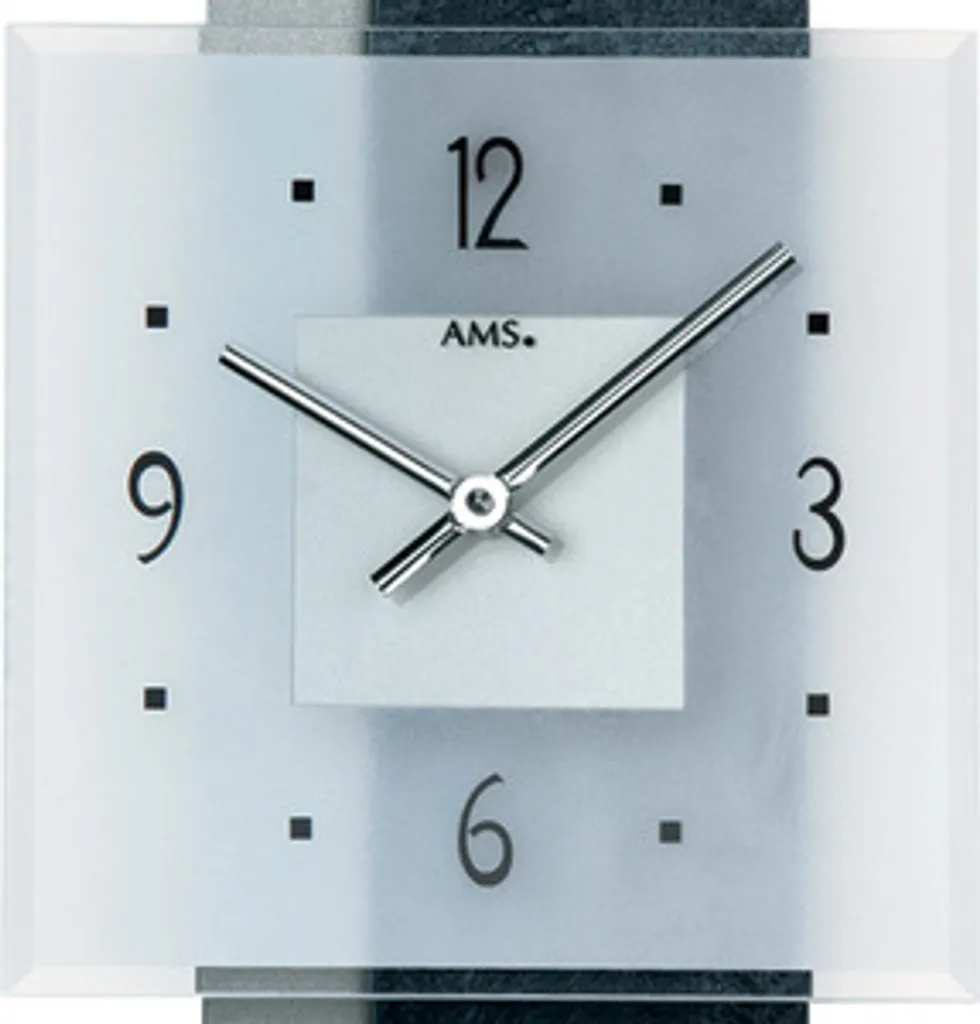AMS 9245 Wanduhr Quarz analog silbern modern mit Schiefer und Glas Schieferuhr