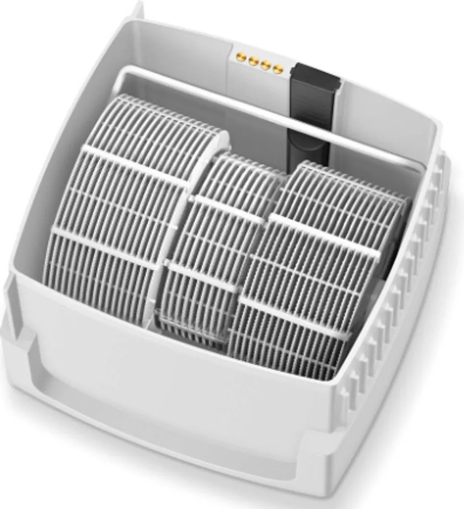 Der Alleskönner befeuchtet Ihre Raumluft durch Kaltverdunstung und reinigt zusätzlich durch Luftwäsche. Durch die dazugehörigen Silber Ionen Pads wird die Entwicklung von Bakterien, Pilzen und Algen im Wasser verhindert, so dass keine Zugabe von chemischen Flüssigkeiten nötig ist.