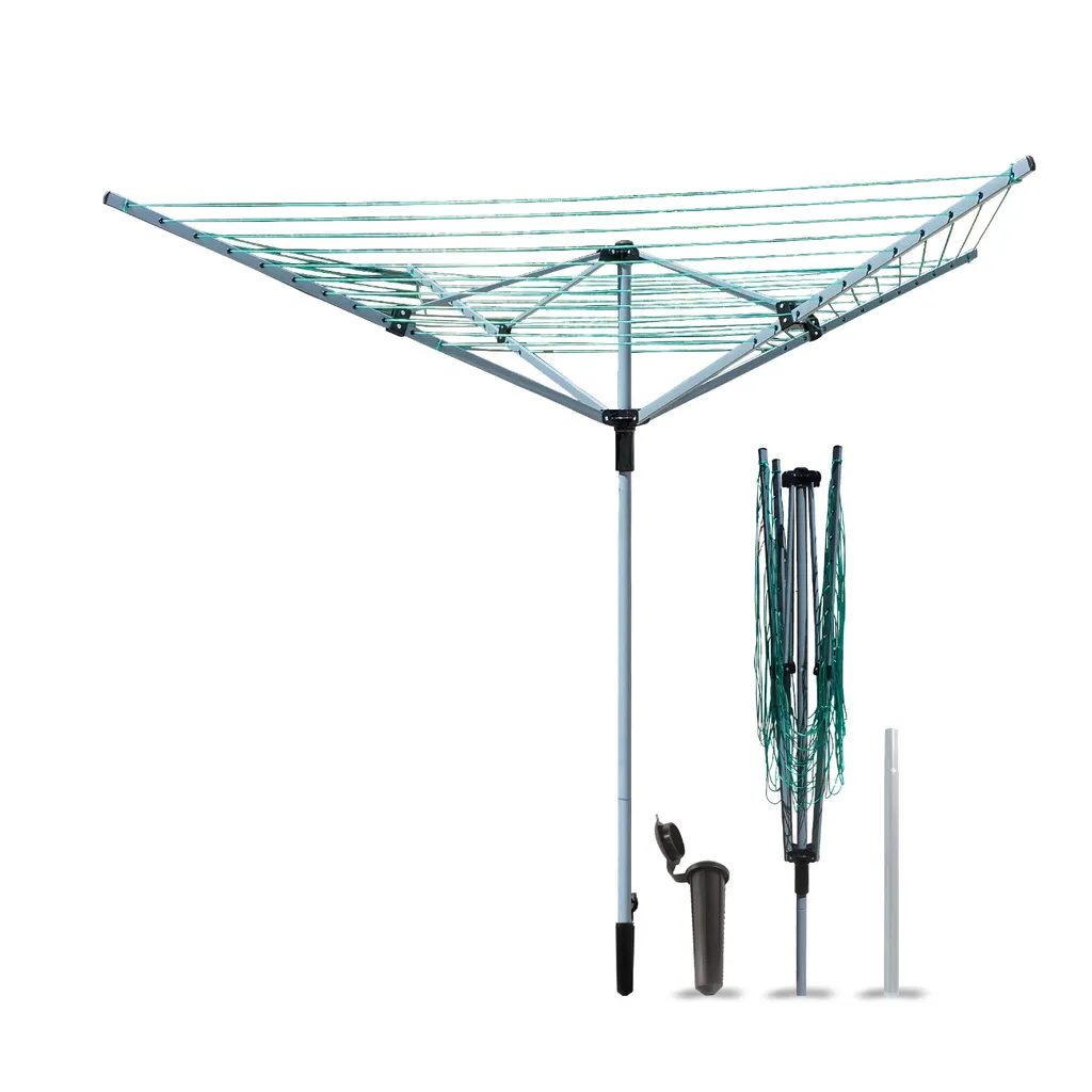 Wäschespinne für Garten aus hochwertigen Materialien sorgen dafür, dass Ihre Kleidung frisch, sauber und gut gepflegt ist. Unsere stabilen und langlebigen Wäschespinne sind leicht zu montieren und zu demontieren. Mit innovativen Ideen und unterschiedlichen Designs gibt es für jedes Haus und jeden Bedarf eine praktische Lösung. Die aus Aluminium und Stahl gefertigte Wäschespinne ist in drei verschiedenen Größen erhältlich und verfügt über 11 verschiedene Schnurlängen in vier Richtungen, um Ihnen viel Platz zum Aufhängen zu bieten. Die Höhe, Richtung der Wäschespinne und die Dichtheit der Wäscheleine können angepasst werden.Sie können den Kleiderständer nach Ihren Bedürfnissen in den idealen Zustand verstellen.