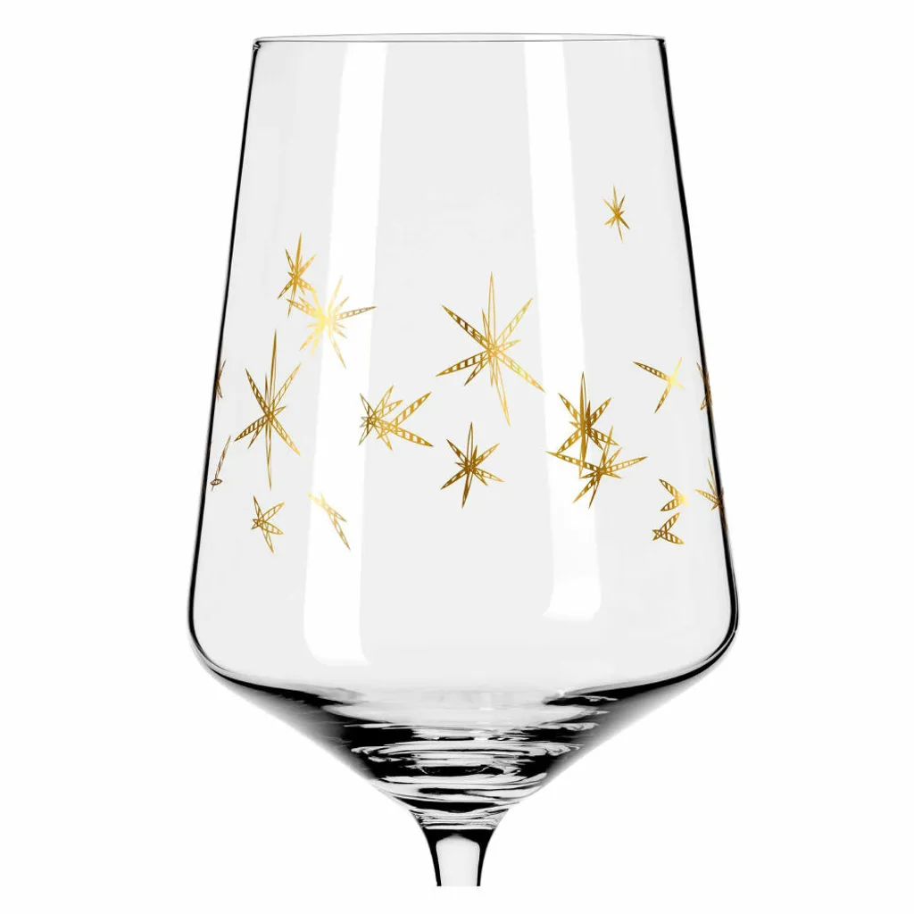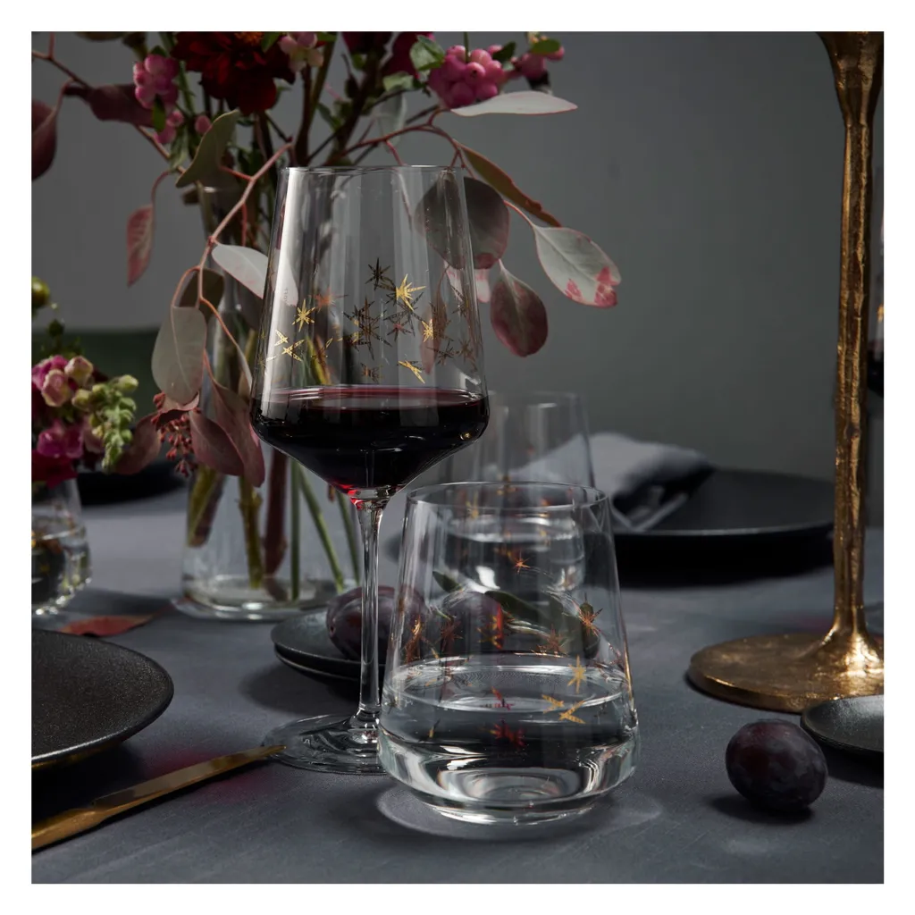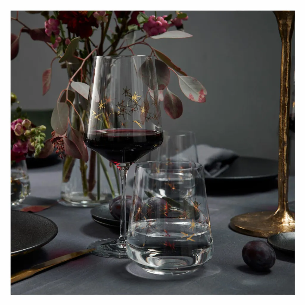 Elegantes Rotweinglas‐Set mit goldenen Sternen für alle festlichen Momente im Leben.