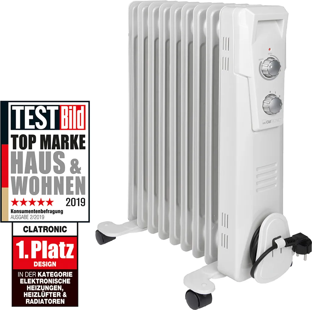 Clatronic RA 3736 – Ölradiator – zum Aufstellen – 2000 W – weiß