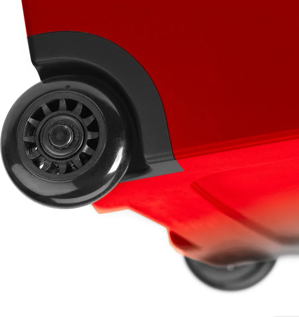– Zwei robuste Räder, ein ausziehbarer Griff und seitliche Griffe zum Hochheben machen den Transport zum Kinderspiel