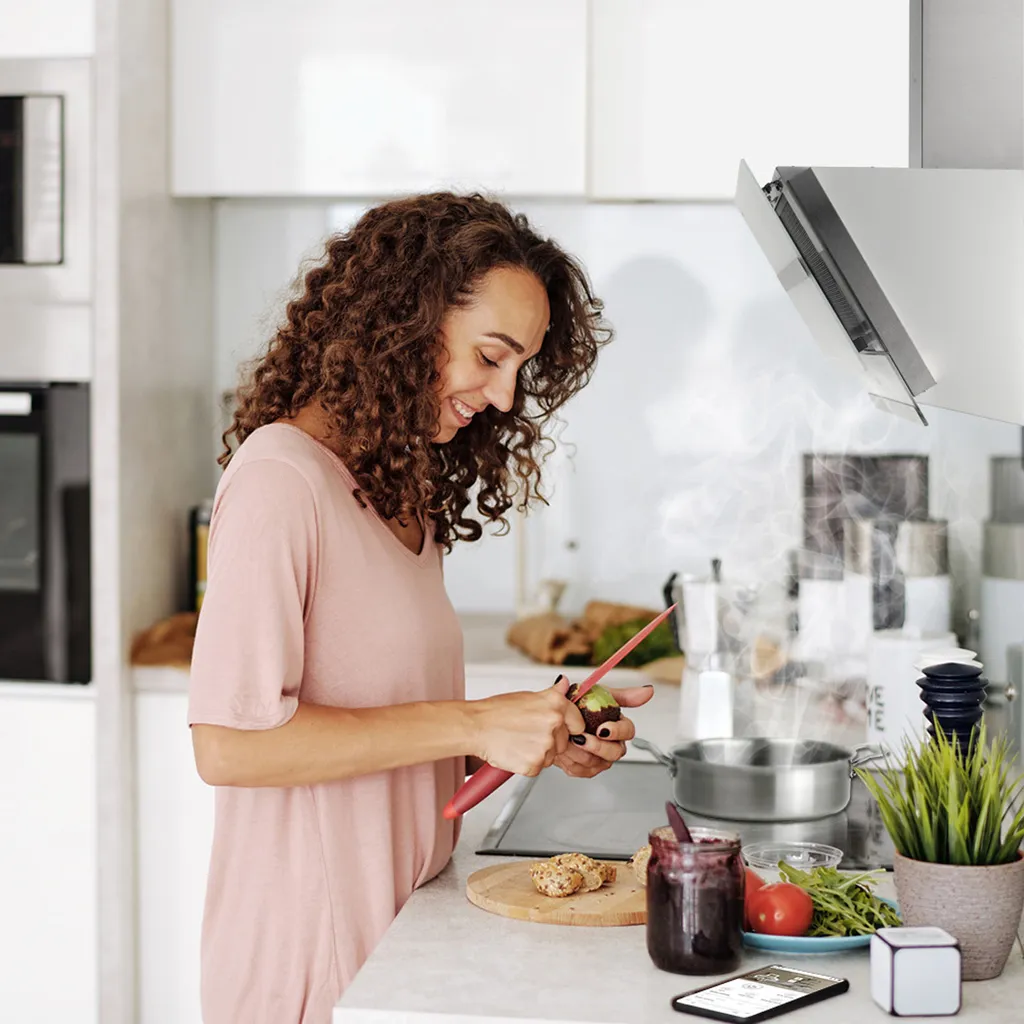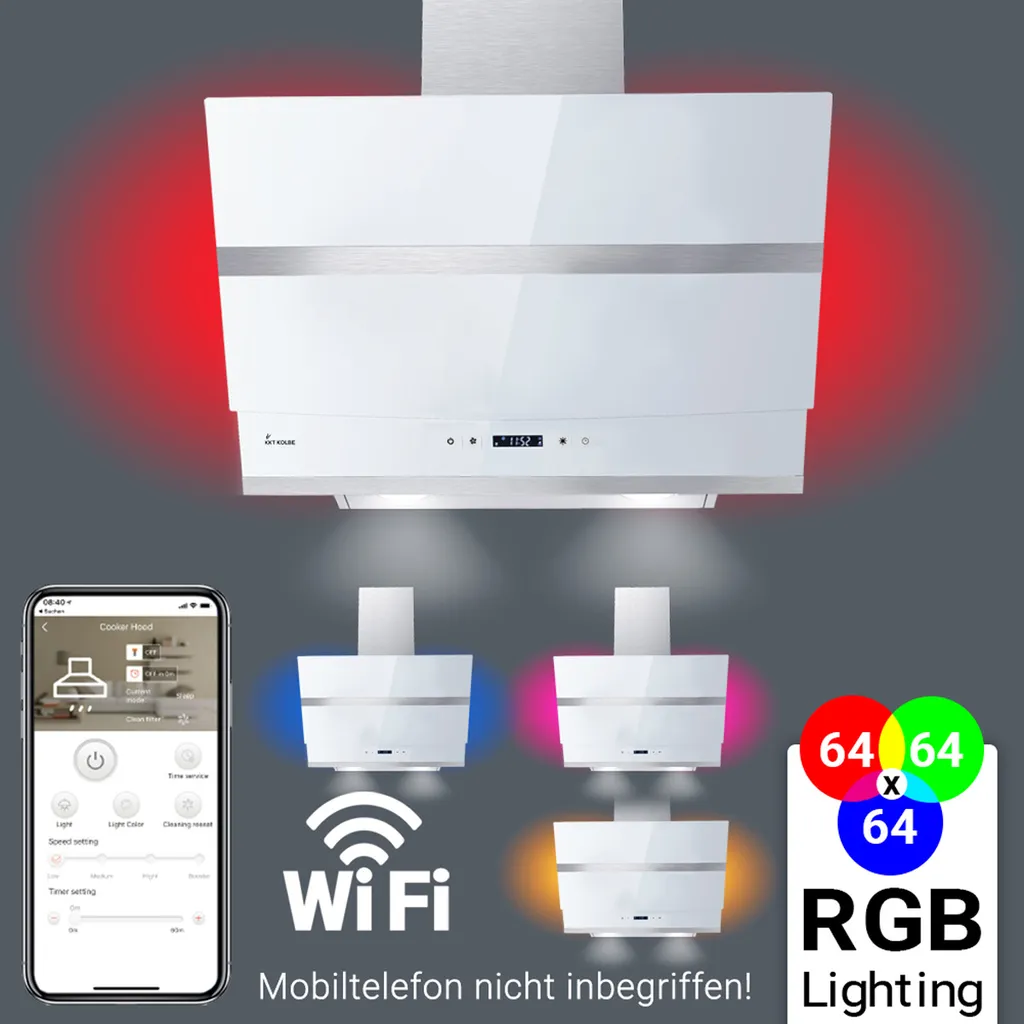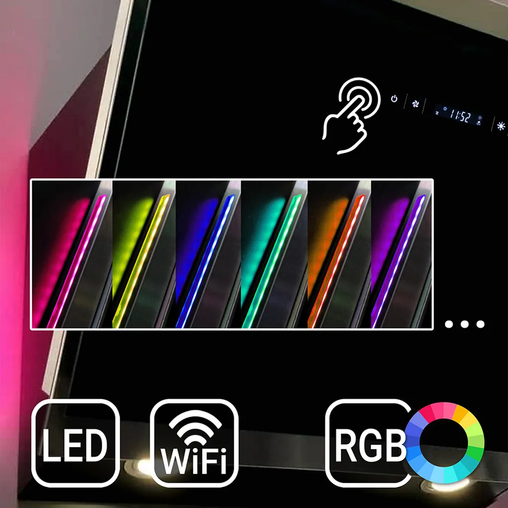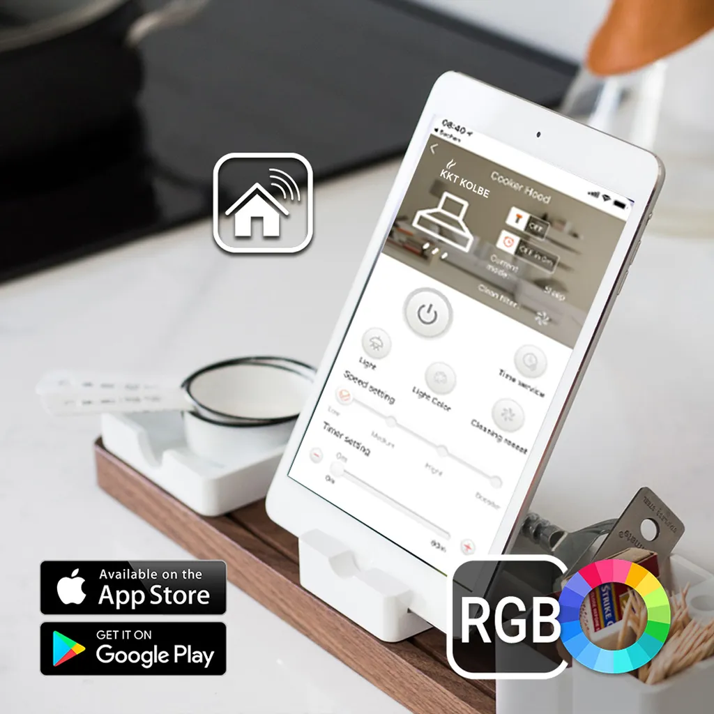 Diese kopffreie KKT KOLBE Dunstabzugshaube verfügt über eine stilvolle RGB-W Ambiente Beleuchtung. Damit können Sie sich aus rotem, grünen, blauem und weißem Licht Ihre persönliche Lieblingsfarbe mischen, um Ihre Küche in stimmungsvolles Licht zu hüllen. Das Kochen wird so zu einem emotionalen Erlebnis mit Wohlfühl-Effekt. Die Ambiente Beleuchtung kann separat zum Licht der Haube ein- und ausgeschaltet werden und die Haube muss dazu auch nicht eingeschaltet sein. Für unterschiedlich starke Kochaktivitäten kann die Haube mit vier unterschiedlichen Leistungsstufen betrieben werden. Das Gerät kann mittels TouchSelect Sensortasten bequem bedient werden. Die LED-Anzeige zeigt alle wichtigen Informationen bequem auf einen Blick.