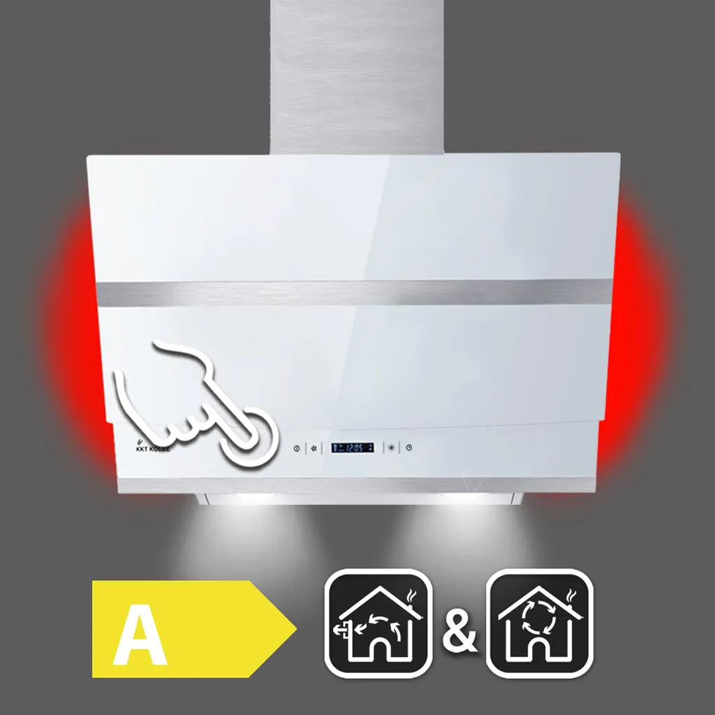 Das Gerät ist mit einer Nachlaufautomatik ausgestattet, die das Gerät automatisch nach einiger Zeit abschaltet. Sie haben die Wahl zwischen Abluft- und Umluftbetrieb, wobei für den Umluftbetrieb ein Kohlefilter benötigt wird. Der Teleskopschacht kann individuell an Ihre Einbausituation angepasst werden. Mit der eingebauten LED-Beleuchtung behalten Sie auf Ihrem Kochfeld immer den überblick. Durch die schräge Form der Haube können Sie fast senkrecht auf Ihre Kochgerichte blicken und stoßen sich dabei nicht den Kopf an. Die Breite von 60cm spart Platz und eignet sich somit auch für kleine Küchen. Das zweifarbige Gerät setzt optische Akzente und könnte ein echtes Highlight Ihrer Küche werden.