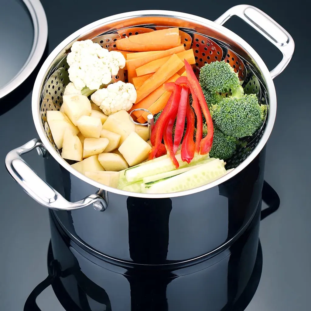 Mehrfachverwendung: zum Dämpfen, wasserarmen Garen, schonendes Erhitzen und Kochen, Blanchieren. Kann zum Garen von Gemüse, Meeresfrüchten, Knödeln, und Fisch etc. Es kann nicht nur als Dampfkorb, sondern auch als Obstbehälter verwendet werden.