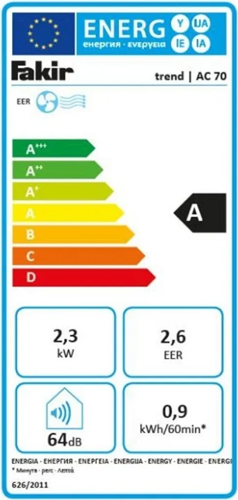 - optimale Kühlleistung für Räume bis max.: 60 m³