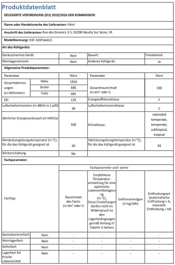 - Durchschn.jährl.Energieverbrauch (kWh): 285
