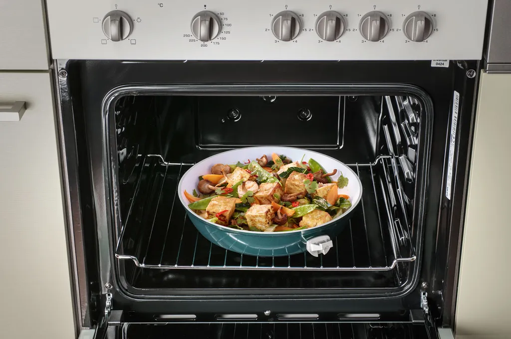 - Hitzebeständig bis über 450°C und verwendbar auf allen Herdarten!