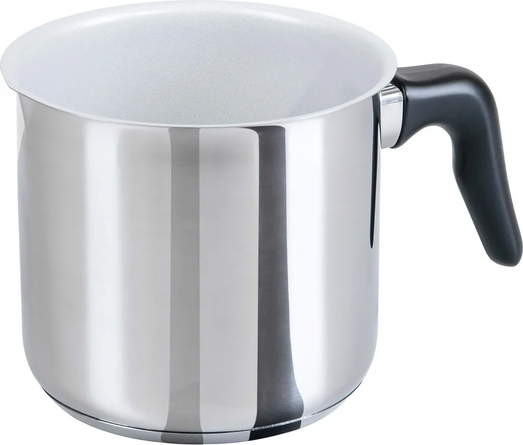 Die neu entwickelte Keramikbeschichtung verfügt über 60% bessere Antihafteigenschaften und Kratzfestigkeit im Vergleich zu anderen Antihaft-Milchtöpfen. So kann fast ganz auf Fett oder Öl während des Kochens verzichtet werden. Die Zubereitungsmöglichkeiten sind vielseitig. Der Milchtopf eignet sich nicht nur zum Erwärmen von Milch oder heißer Schokolade, sondern auch für die Zubereitung von Suppen, Pudding, Saucen, Käsefondue und vielem mehr. Cerafit Steel verfügt über beste Wärmeleitungs- und speicherungseigenschaften, dank des neu entwickelten Sandwichbodens mit Aluminiumkern und verbesserter Induktionsfähigkeit. Darüber hinaus ist der Milchtopf für alle Herdarten geeignet und leicht zu reinigen! Der Cerafit Steel Milchtopf steht für Schnelligkeit in der Zubereitung, eine kinderleichte Anwendung und eine bewusste Ernährung.