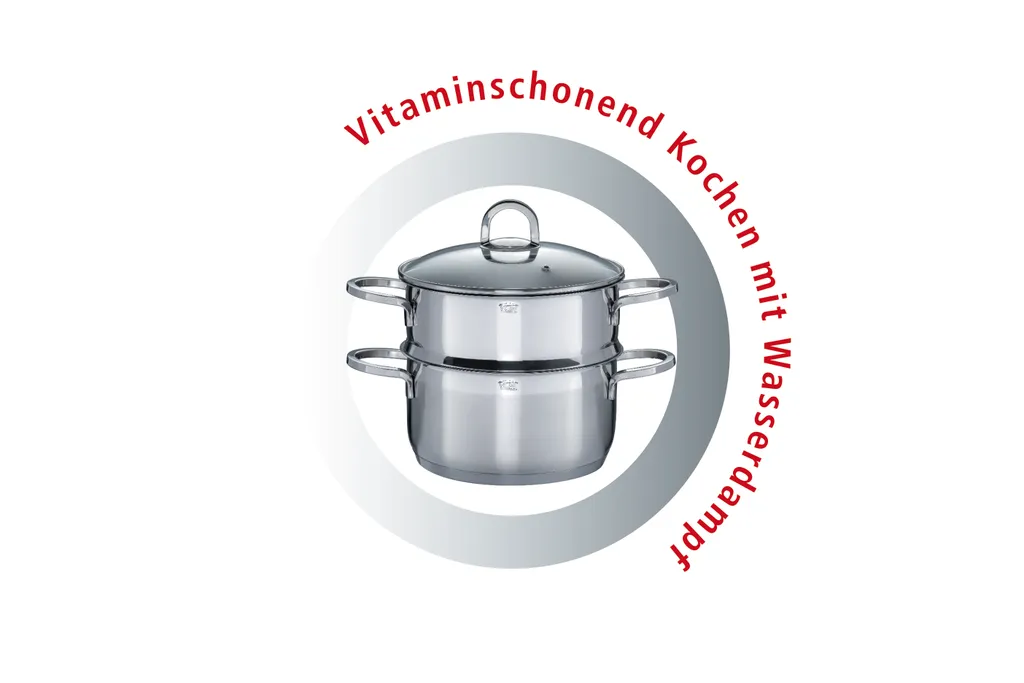 Kurzbeschreibung: Hochwertiger Edelstahl rostfrei 18/8 mit handfreundlichen Kaltmetallgriffen. Innen hochglanzpoliert mit praktischer Literskala und außen seidenmatt. Energiesparender Kapselboden, für alle Herdarten – auch für Induktion geeignet.