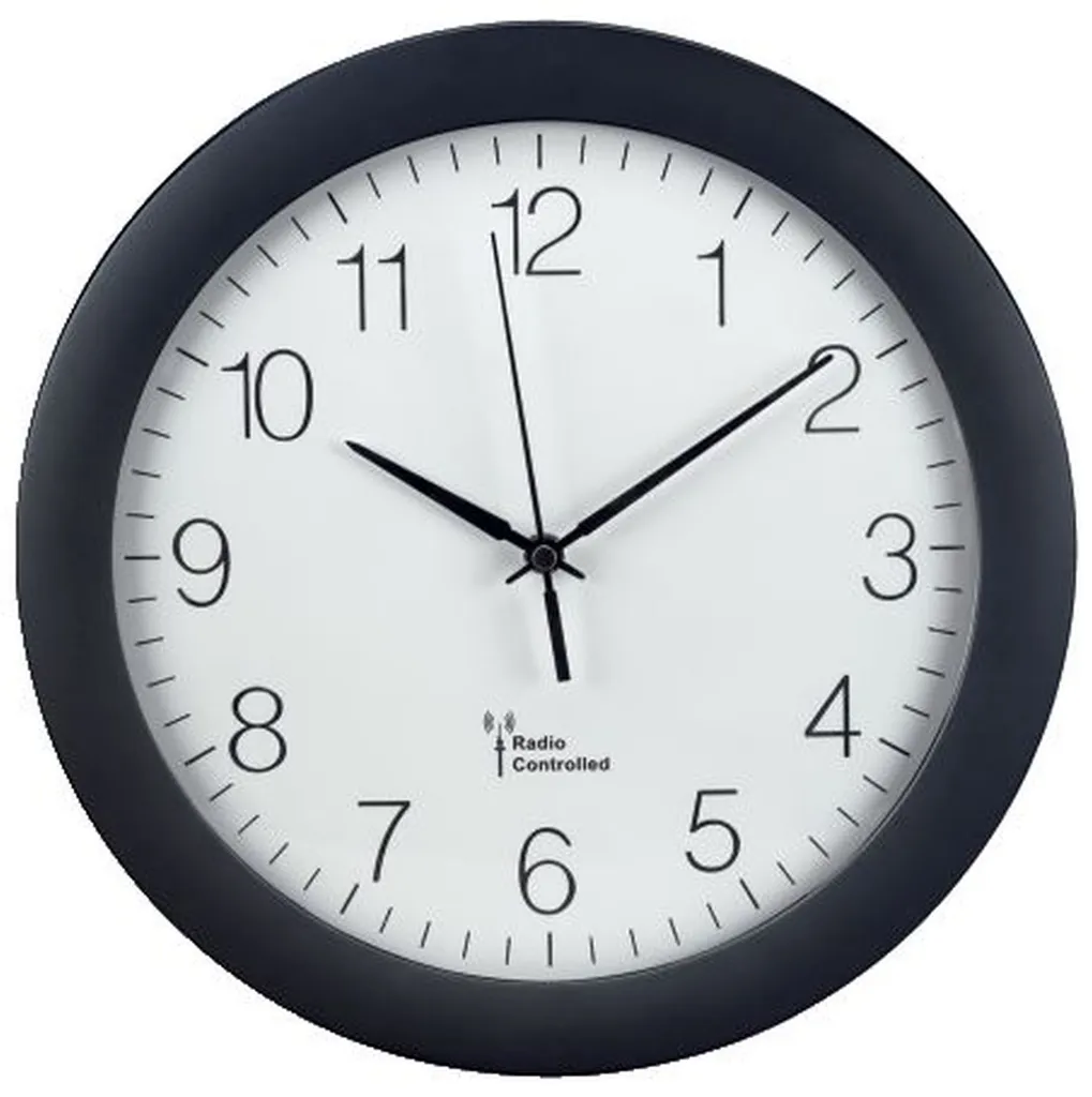 Funk-Wanduhr PG-300 00106936 Ø 30 cm, Ausführung: breiter und schwarzer Rand, weißes Zifferblatt, mit arabischen Zahlen, automatische Zeitanpassung, Gehäuse-Ø: 300 mm, Gehäusehöhe: 35 mm, Material Gehäuse/Abdeckung: Kunststoff/Glas, Batterie: Mignon AA