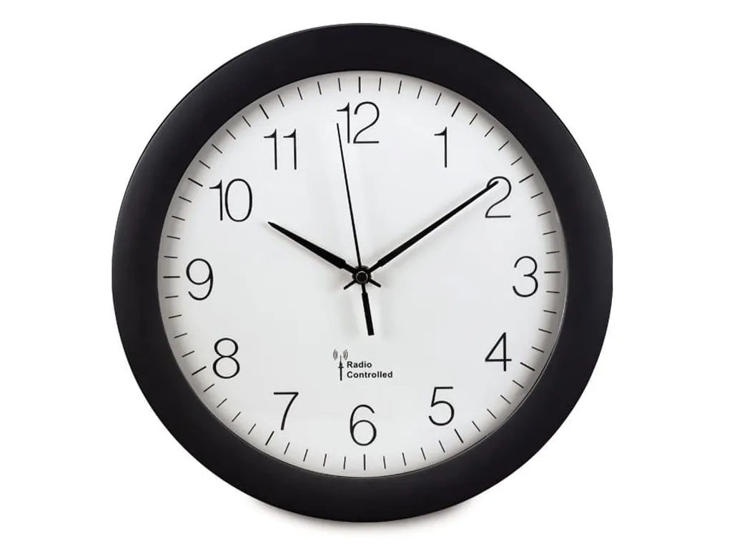 – Wanduhr, gesteuert durch DCF -Radiosignal – Automatische Zeiteinstellungen gemäß den genauesten Stunden der Welt – Analoges Display – großes weißes Zifferblatt mit arabischen Zahlen – Stunden-, Minute- und Sekundenzeiger – Abmessungen (Tiefe x Durchmesser): 5,2 x 30 cm – Gewicht : 500 g – Strom: 1x Mignon AA (Paketpart) – Flip/Cover Mater