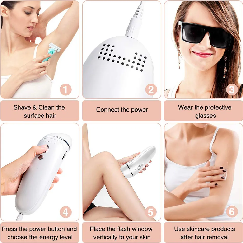Mit dem IPL-Haarentfernungssystem können Sie die Probleme der täglichen Rasur loswerden, sich von allen unerwünschten Haaren verabschieden und eine natürliche, haarfreie Haut erhalten. Es hilft, sich auf Partys selbstsicher zu zeigen. Genießen Sie das Sonnenbad im Badeurlaub.