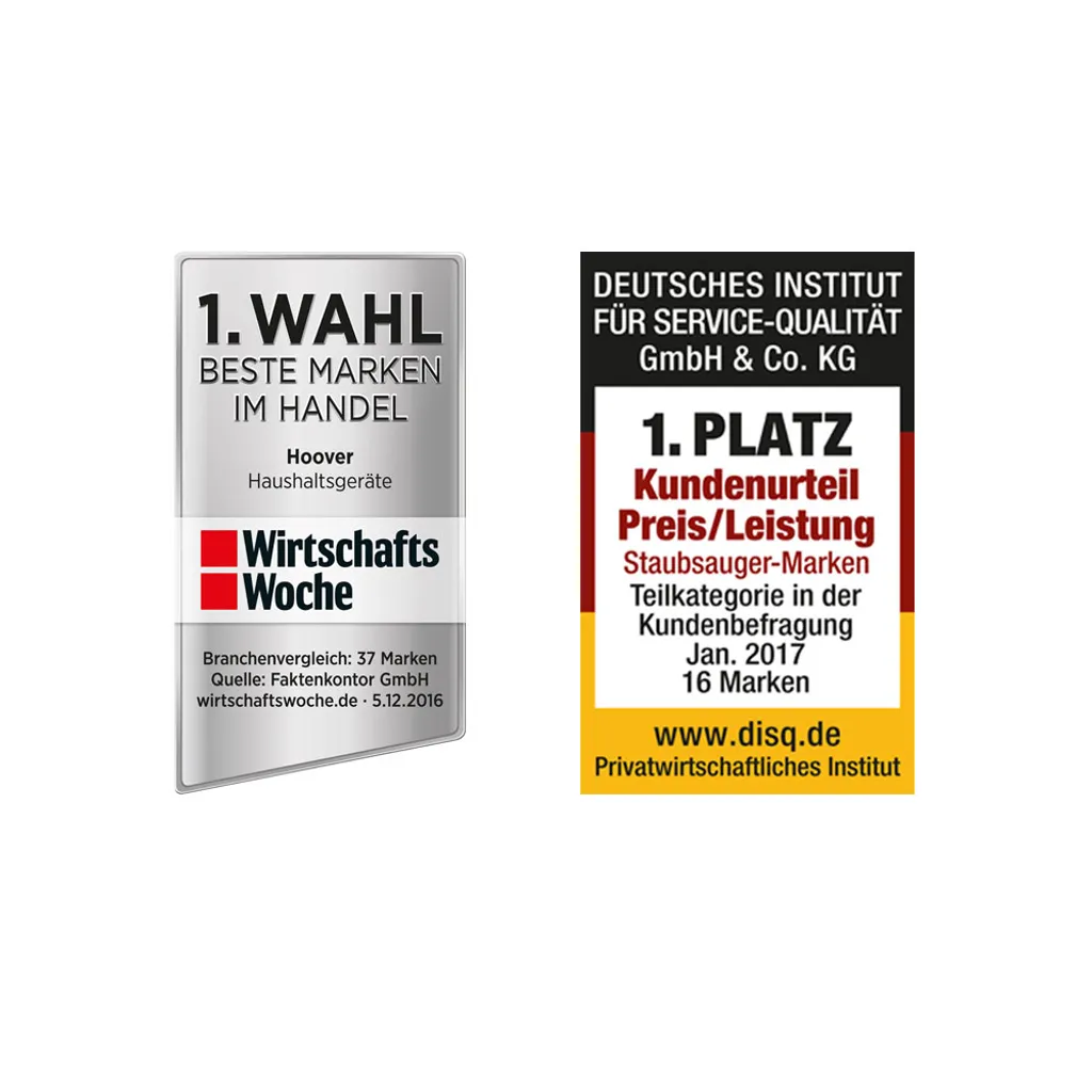 - Gründliche Reinigungsleistung vergleichbar mit einem herkömmlichen Hoover Staubsauger mit 2100 Watt (Quelle: Hoover)