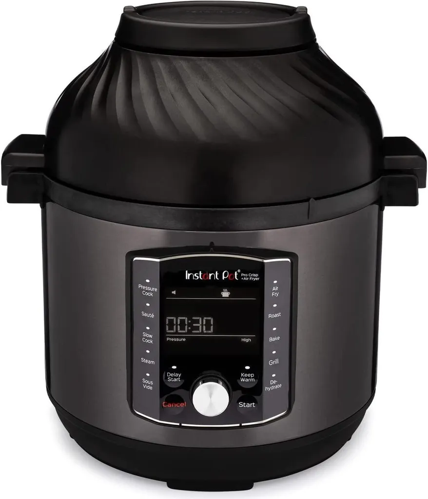 KOCHEN WIE EIN PROFI: 11-in-1-Schnellkochtopf, Heißluftfritteuse, Slow Cooker, Dampfgarer, Speisenwärmer, Sous Vide, Bräter, Minibackofen, Girll und Dörrgerät. Der Topf, der alles macht und es einfach aussehen lässt.VON SCHNELLKOCHEN BIS ZUM LUFTFRITTIEREN: Die EvenCrisp-Technologie kocht zarte, saftige Mahlzeiten und die perfekten Pommes mit bis zu 95 % weniger Öl.VOLLSTÄNDIG ANPASSBAR FÜR MAHLZEITEN AUF KNOPFDRUCK: Kochen mit nur einer Taste war noch nie so einfach – mit Instant Pot Pro Crisp können Sie die Garzeiten und Temperaturen Ihrer Lieblingsrezepte speichern.PRO-LEVEL-UPGRADES & DESIGN: Elegantes schwarzes Finish, das auf der Arbeitsplatte elegant aussieht. Der verbesserte Innentopf und Deckel haben außerdem Hitzeschutz.“SHARING IS CARING“: Mit dem großen Fassungsvermögen von 8 Litern und bis zu 70% schnelleren Garzeiten als andere Garmethoden ist der Topf perfekt für Familien. Der Topf ist perfekt für das wöchentliche Zubereiten von Mahlzeiten und fürs Vorkochen oder aber auch perfekt für Partys!