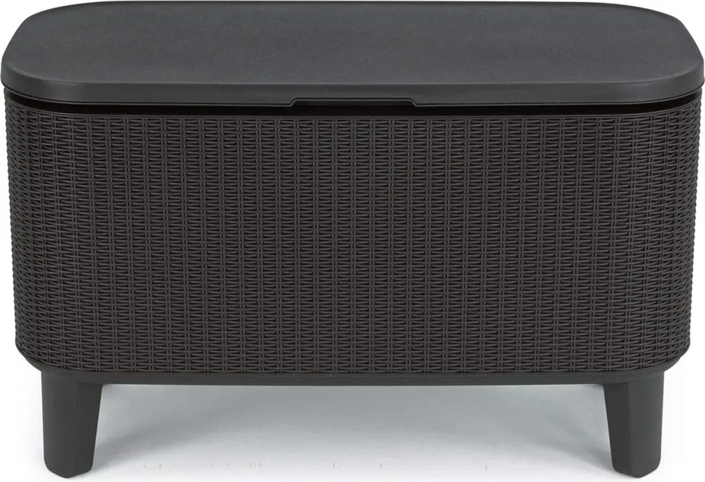 Eine funktionale Gartenbar, die zusammengeklappt als praktischer Tisch dient und im aufgeklappten Zustand als klassische Bar mit einem Behälter zum Kühlen von Getränken verwendet werden kann. Elegantes Design, Rattan-Web-Finish und Funktionalität machen die Bevy Cool Bar zu einer sehr hilfreichen Lösung für die Organisation von gesellschaftlichen und familiären Treffen im Garten.