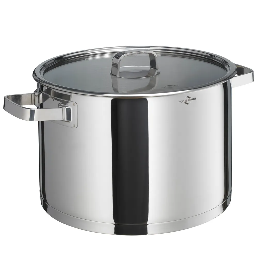 Die Lieblingssuppe auf Vorrat zu kochen ist mitdem Suppentopf von KÜCHENPROFI ein Kinderspiel.Dank des großzügigen Volumens ist der Topf auchfür die große Familie oder bei Festlichkeiten einunverzichtbarer Helfer. Durch den passendenGlasdeckel bleibt das Essen immer im Blick, diestabilen, großzügigen Griffe ermöglichen einensicheren Transport vom Herd auf den Tisch.Packungsinhalt: Suppentopf, Glasdeckel Extra starker MehrschichtbodenDeckel aus SicherheitsglasWärmeisolierende GriffeMit praktischer InnenskalaGeeignet für alle HerdartenPflegehinweise innenliegend