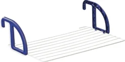 Platzsparende Aufhängung für Balkon. Stufenlos verstellbare Befestigungsbreite. Wetterfeste Trockenstäbe mit Antislip-Ummantelung. Trocknerlänge: 7 Meter.
