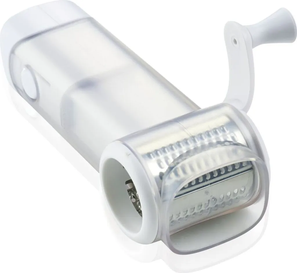Komfortable Käsemühle mit einzigartigem Vordrück-Mechanismus: Ganz ohne Kraftaufwand wird der Käse während des Reibens automatisch an die Reibe drückt. Mit transparentem Füllbehälter. Spülmaschinengeeignet.