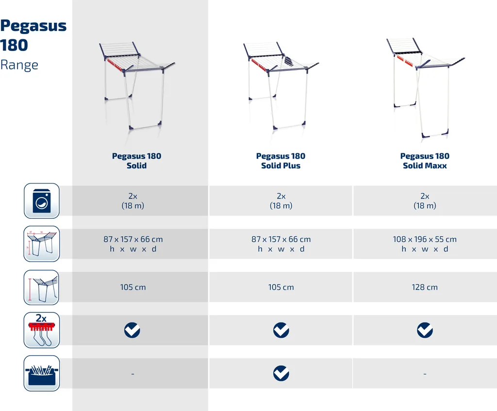 | Zusätzliche Varianten | Standtrockner Pegasus 180 Solid, Standtrockner Pegasus 180 Solid Plus |