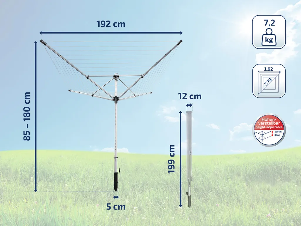 - Inkl. Schutzhülle für zuverlässigen Rundum-Schutz des Wäscheschirms