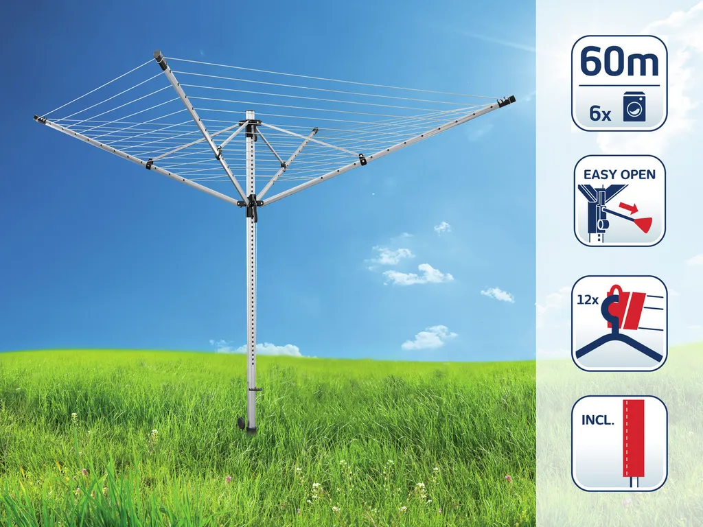 - 60 Meter Leinenlänge bietet Platz für bis zu 6 Waschmaschinenladungen
