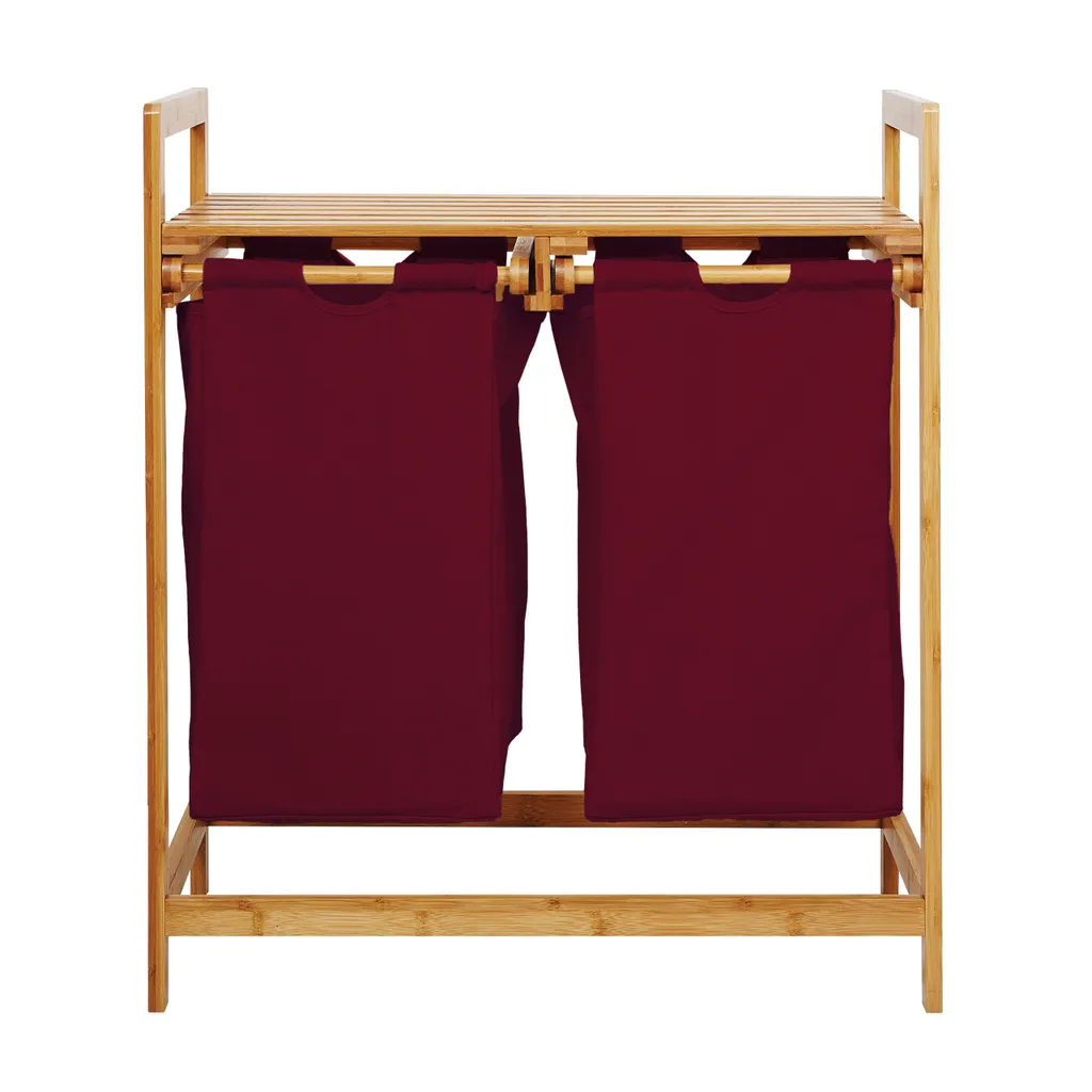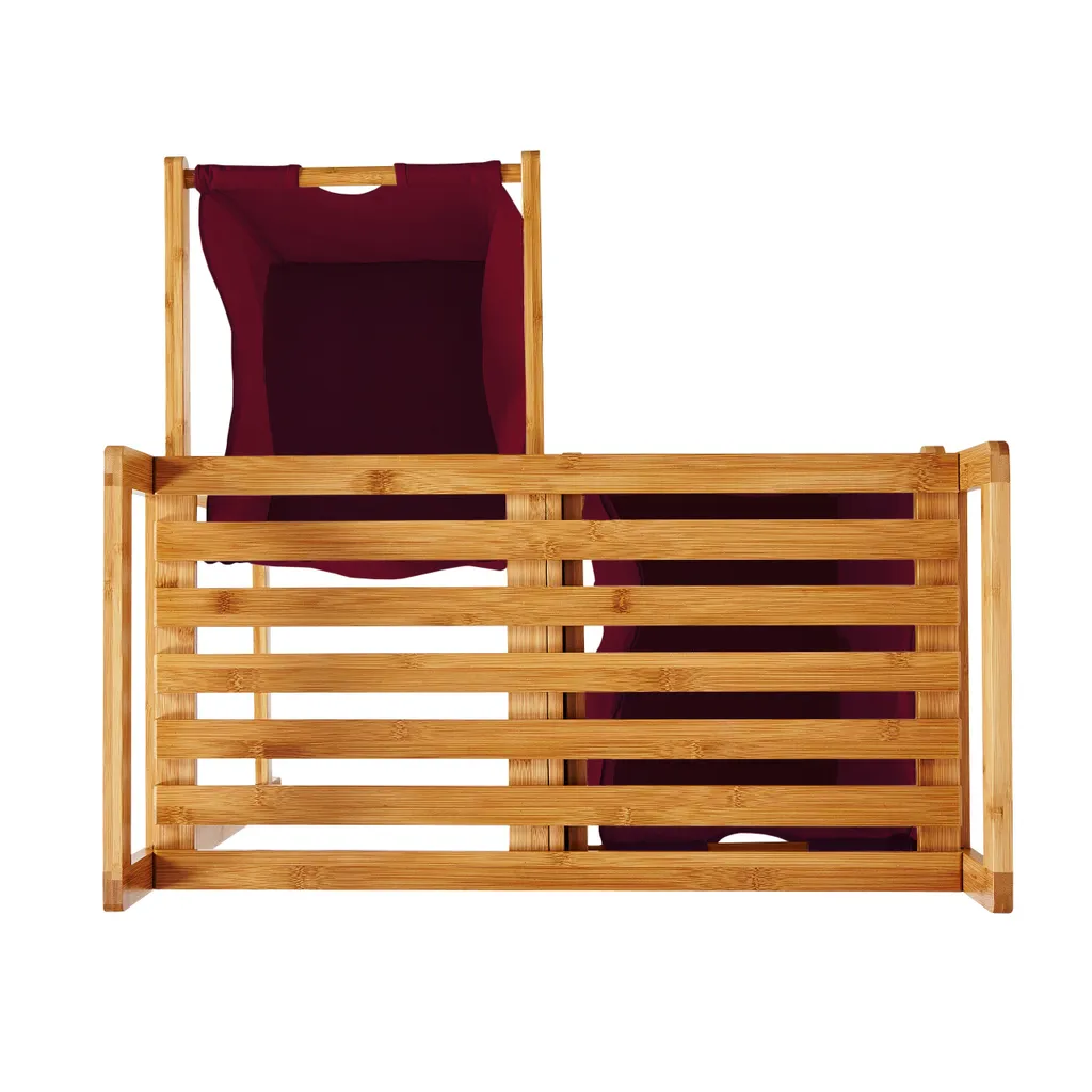 Lumaland Wäschekorb Aus Bambus, Mit 2 Wäschesäcken, 73x64x33 Cm Dunkelrot