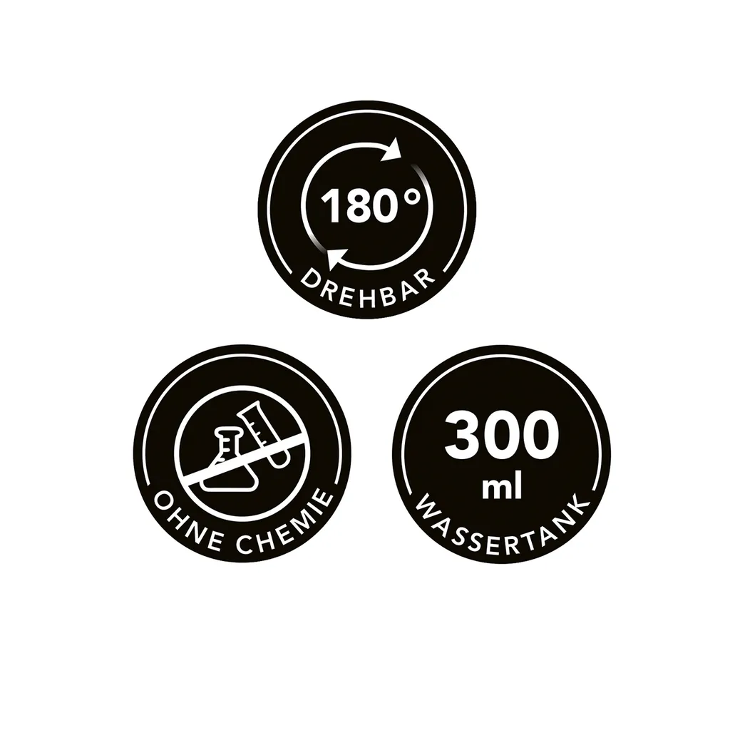 - Hygienische Sauberkeit nur mit Wasserdampf – ohne Chemie!