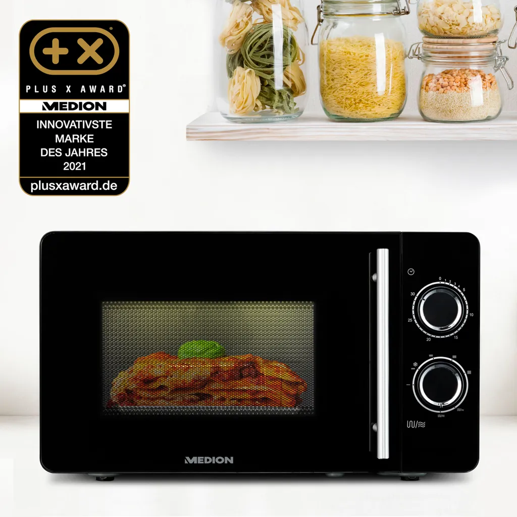 Die MEDION Mikrowelle bietet Ihnen mehr Komfort und mehr Flexibilität als vergleichbare Küchenhelfer. Mit Hilfe der integrierten Grillfunktion überbacken Sie beispielsweise wie ein Profi. So können Sie sich selbst und Ihre Liebsten kulinarisch wirklich verwöhnen.