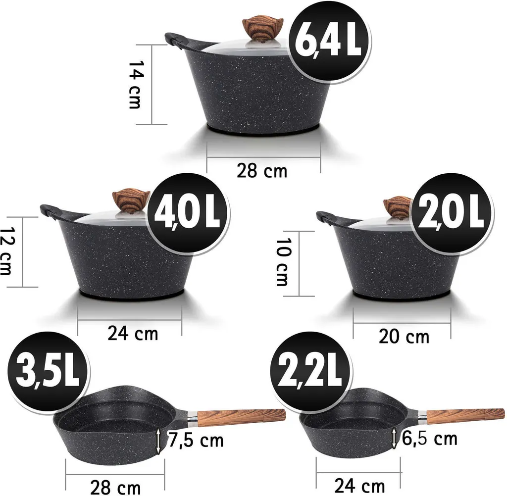 - Unser Kochgeschirr-Set Nero-Black in schwarz ermöglicht ein gesundes, vitaminschonendes und fettarmes Kochen, Schmoren und Braten von Fleisch, Fisch und Gemüse