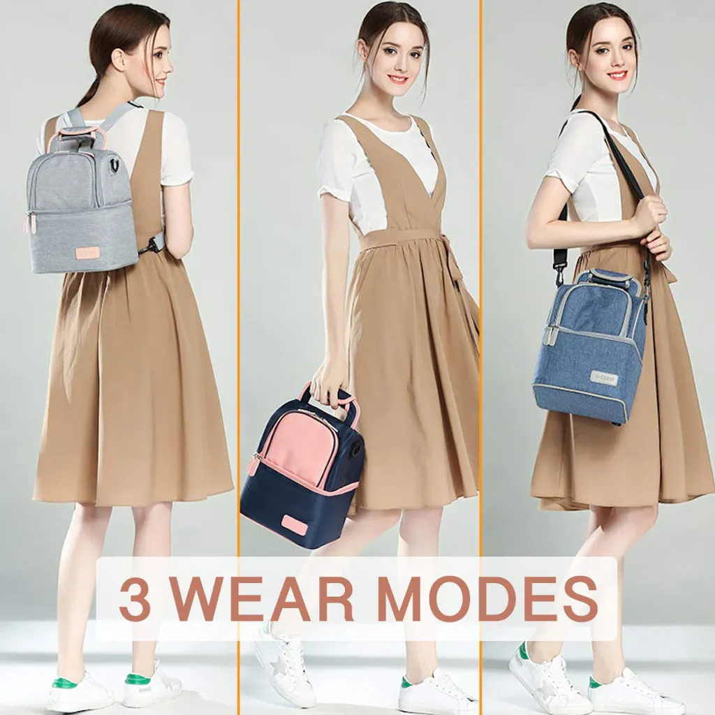 Zweilagiges Design: Das zweilagige Design hilft Müttern dabei, das Problem zu lösen: Es ist zu schwer, eine Milchpumpe und andere Dinge mitzunehmen. Legen Sie verschiedene Gegenstände in verschiedene Taschen und leicht herauszunehmen.