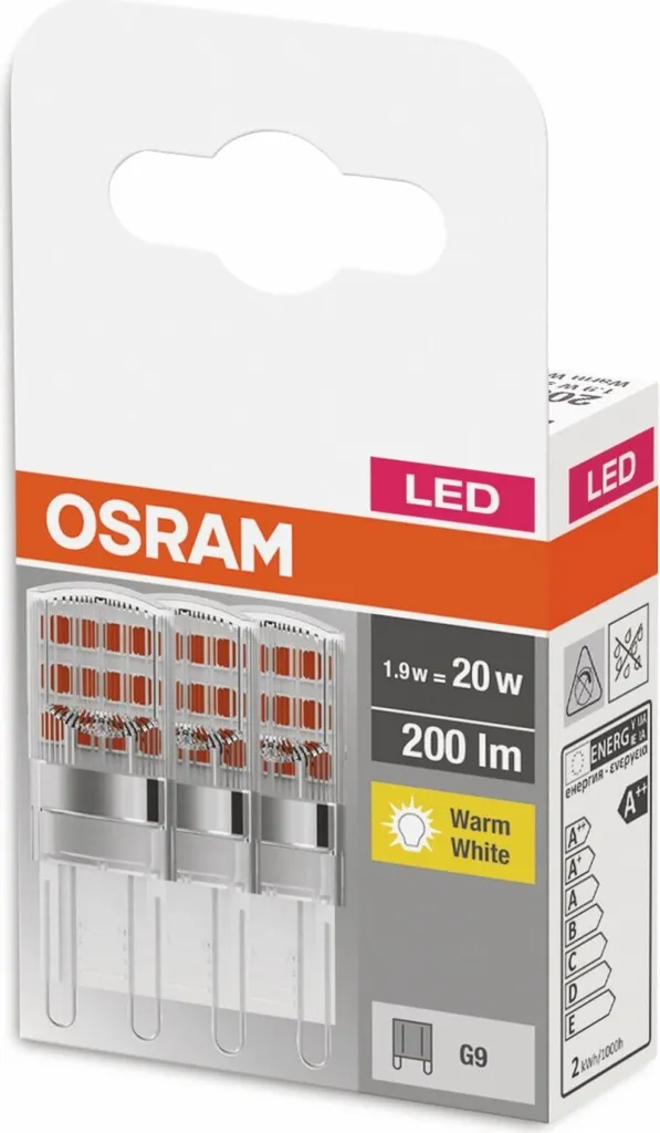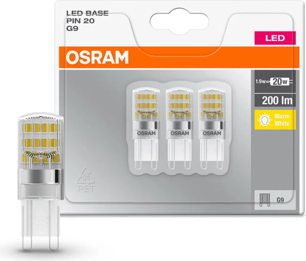 • OSRAM BASE PIN G9 LED Lampe 1,9W 3-er Pack warmweiss wie 20W
