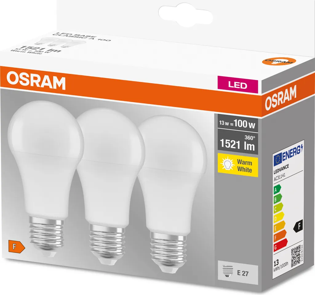 Osram LED Leuchtmittel Birnenform 13W = 100W E27 matt 1521lm warmweiß 2700K 180° 3er-Pack