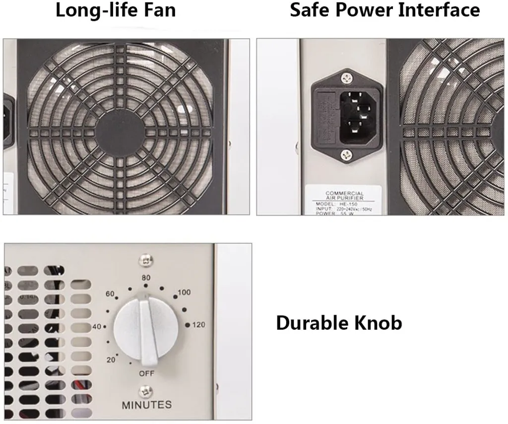 OZONGENERATOR – Ozongenerator zur Verwendung in unbesetzten Räumen. Die Maschine verfügt über einen Timer, den Sie einstellen und nach Abschluss des Ozon-Desodorierungsprozesses wieder herstellen können. Kehren Sie 1-2 Stunden nach dem Ausschalten zurück und Ihr Raum riecht extrem frisch wie der Geruch nach einem Gewitter. Während das Gerät in hohen Konzentrationen nach Chlor oder Bleichmittel riecht, während die Luft von schlechten Gerüchen gereinigt wird, ist dies normal. Nachdem das Ozon eine niedrigere Konzentration erreicht hat, riecht es nach einem Gewitter.