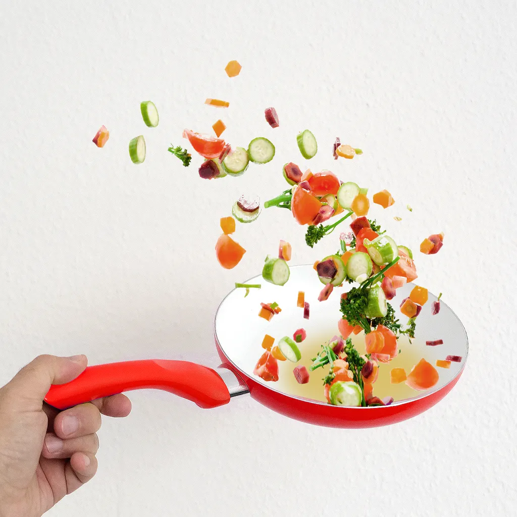 - Material: Aluminium mit Keramikbeschichtung und Kunststoffgriffen