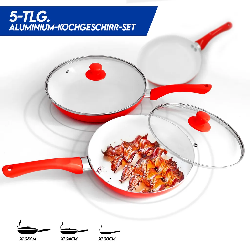- 5-teiliges Set, bestehen aus 3 Pfannen und 2 Glasdeckeln