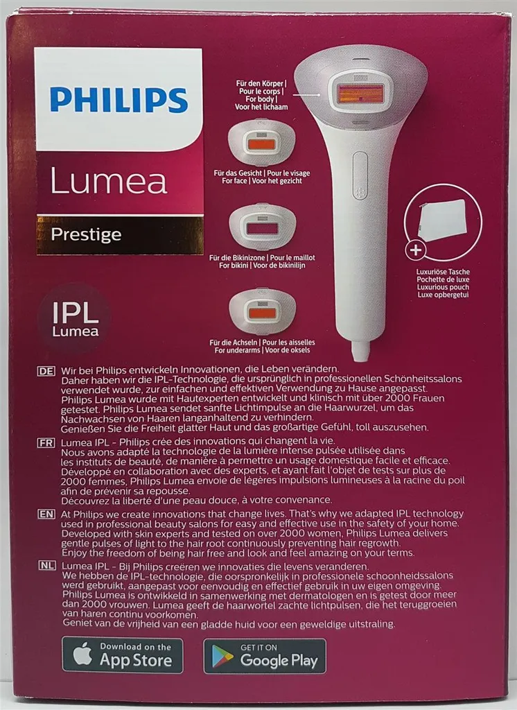 - Enthält Philips Lumea Prestige (BRI947/00) und Satin Compact Korrekturtrimmer (HP6388/00)