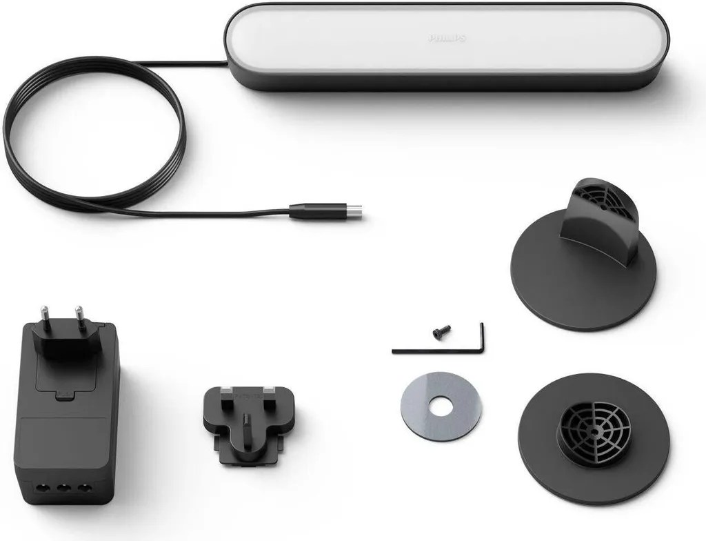 - Hue Play lässt sich mit einer Kabellänge von 2 Metern vielseitig positionieren, ob auf dem Boden, hinter dem Schrank oder direkt hinter dem Fernseher montiert, horizontale und vertikale Positionierung möglich