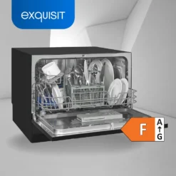 Exquisit Geschirrspüler GSP206-030F SchwarzPV | Tischgeschirrspüler | 6 Maßgedecke | Schwarz