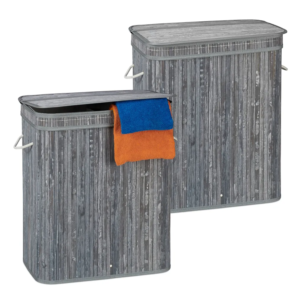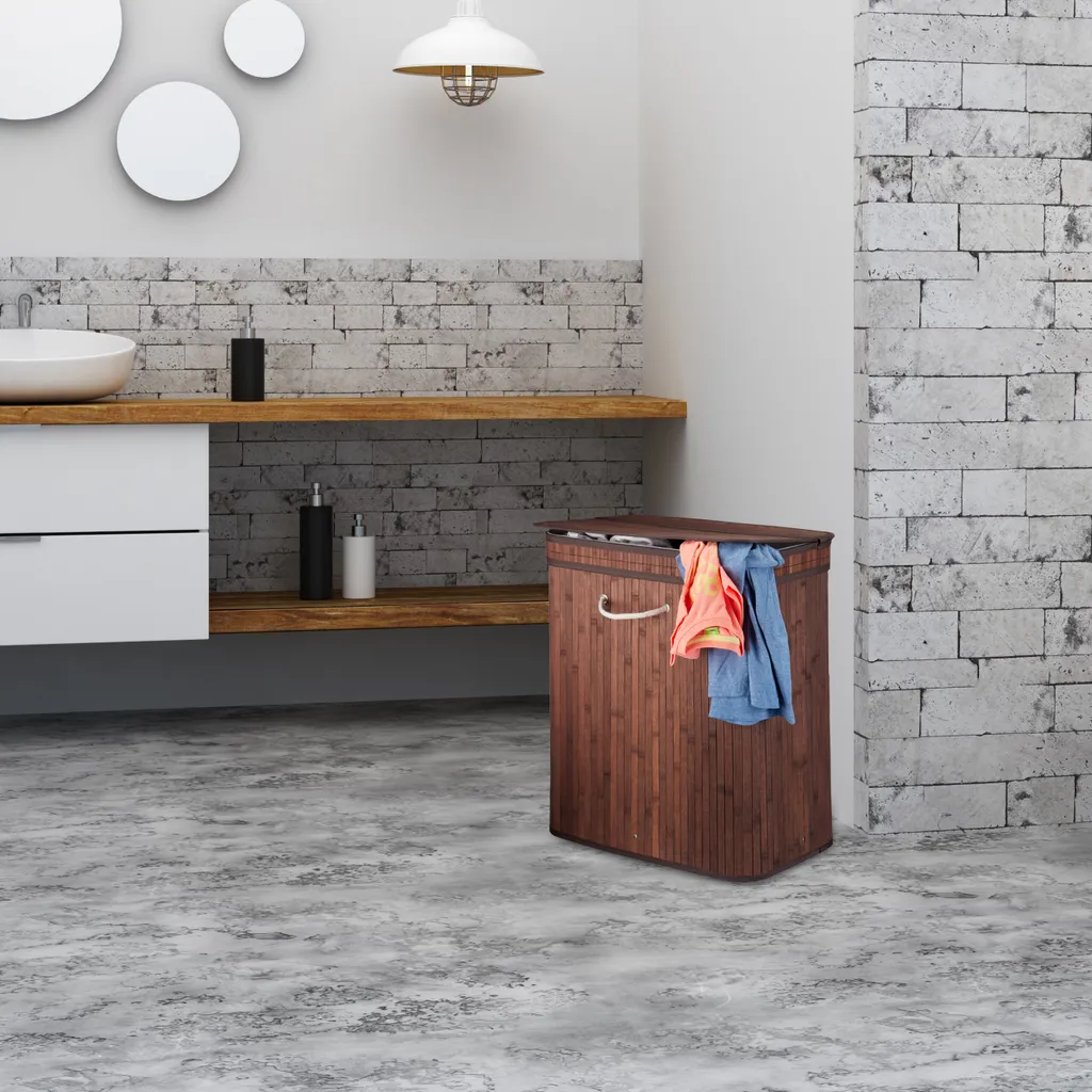 Mit dem Wäschesammler aus Bambus holen Sie sich ein praktisches und zugleich dekoratives Accessoire in Ihr Zuhause. Die Fertigung aus Bambus macht die Wäschetonne zum optimalen Möbel für Feuchträume. Die Wäschebox mit Klappdeckel verfügt über einen herausnehmbaren Wäschesack, der in zwei Kammern aufgeteilt ist. So haben Sie stets den Überblick über Ihre Wäsche und können bequem nach Farben oder Art der Kleidung sortieren. Bei Bedarf kann der Wäschetrenner zusammengefaltet und verstaut werden.