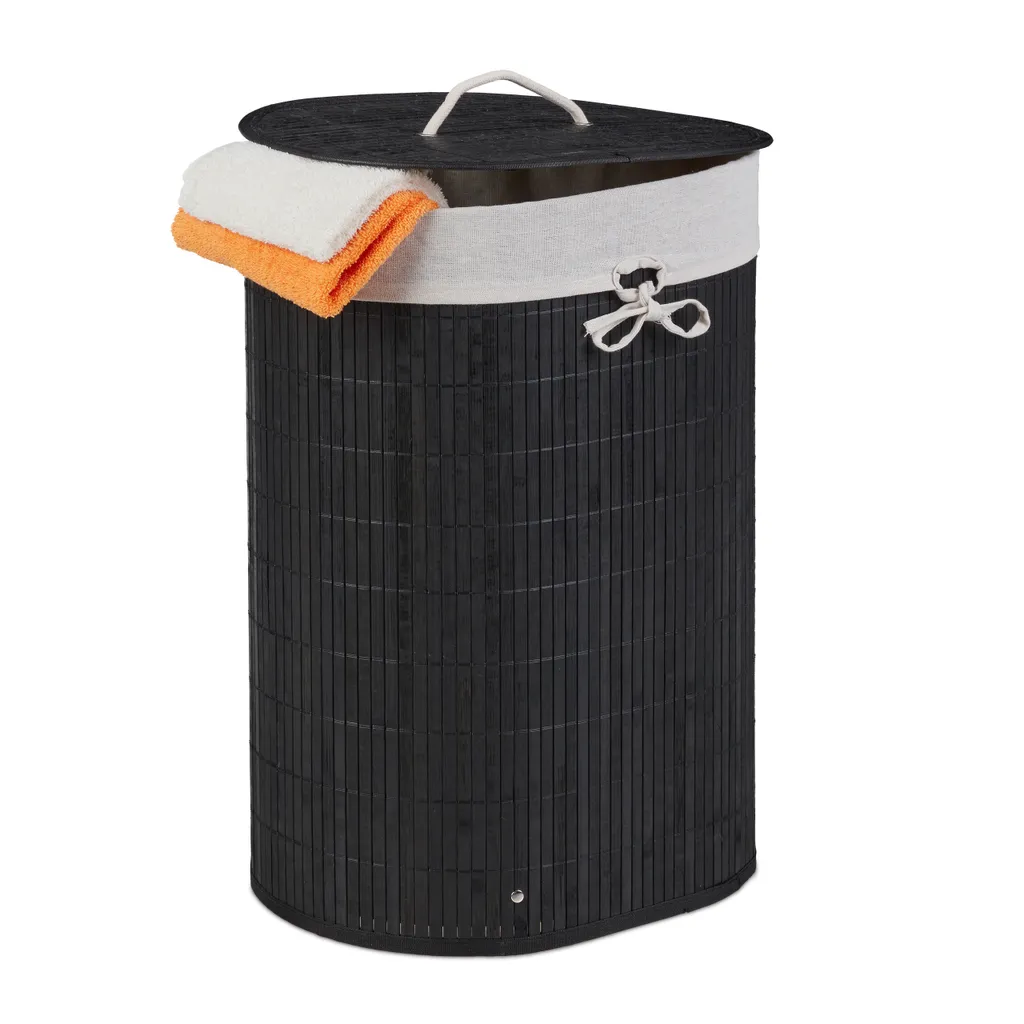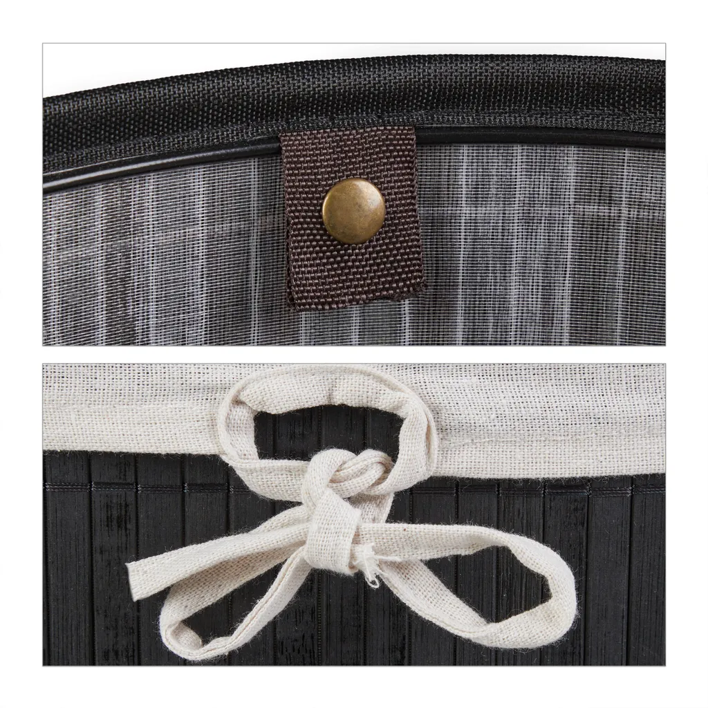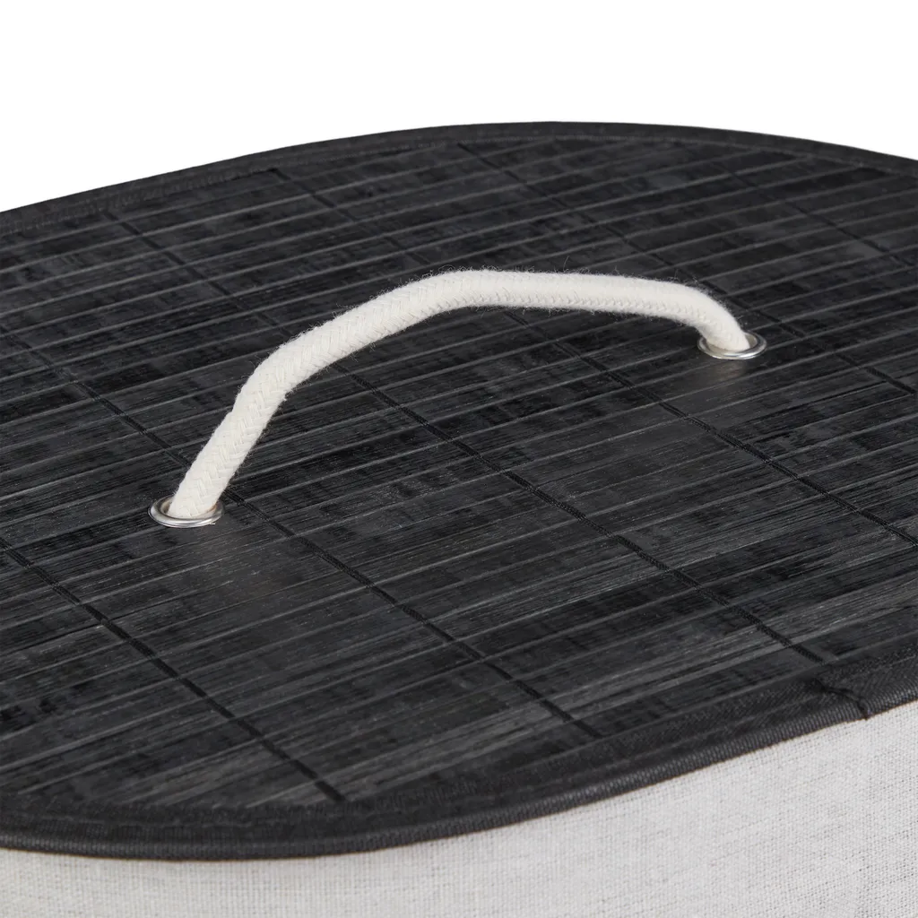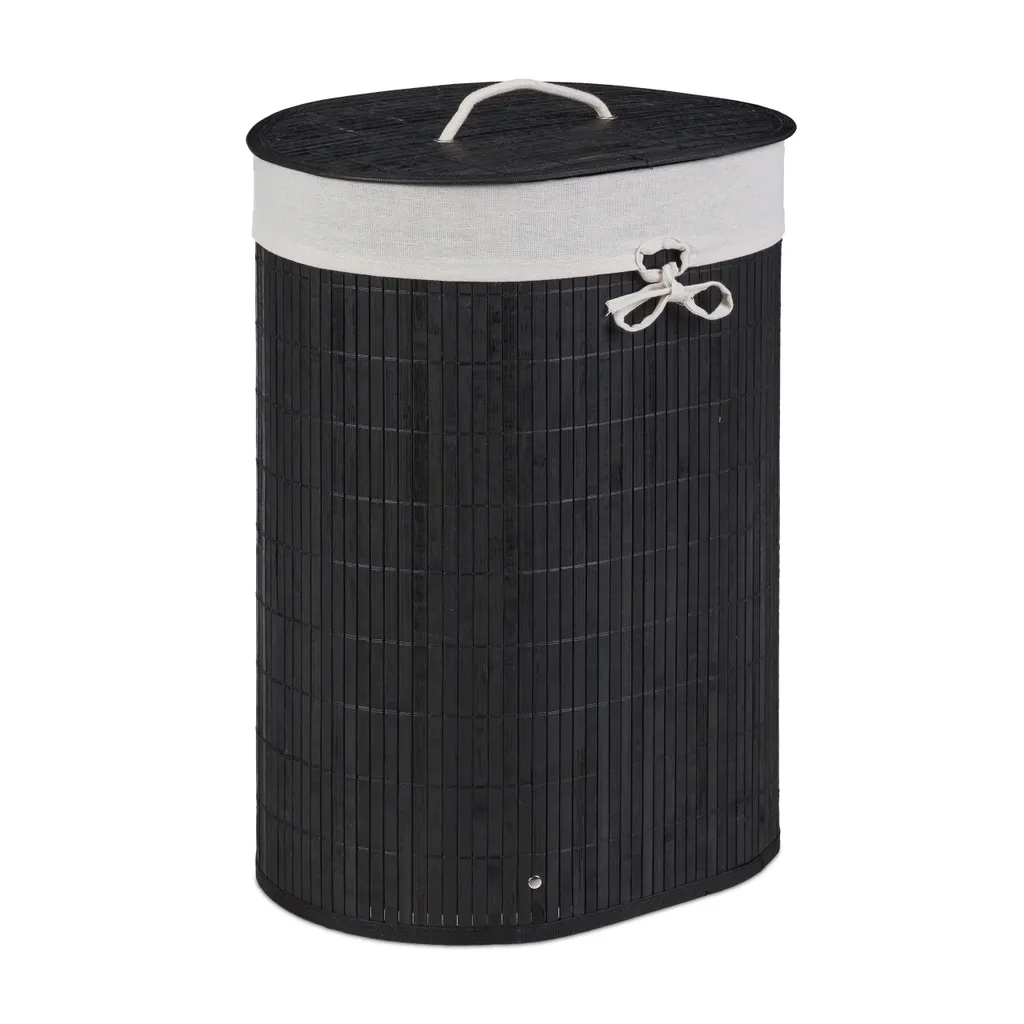 Holen Sie sich den idealen Wäschesammelkorb für Schlafzimmer, Bad oder Waschkeller. Die Fertigung aus Bambus macht den Kleiderkorb zum optimalen Möbel für Feuchträume und schafft einen dekorativen Look, der überall Highlights setzt. Der ovale Dreckwäschesammler bietet mit einem Volumen von 46 Litern ausreichend Platz für Ihre Schmutzwäsche. Diese kann dank Deckel blickgeschützt bis zum nächsten Waschgang verstaut werden. Bei Bedarf wird die Wäschebox einfach zusammengefaltet und verstaut.