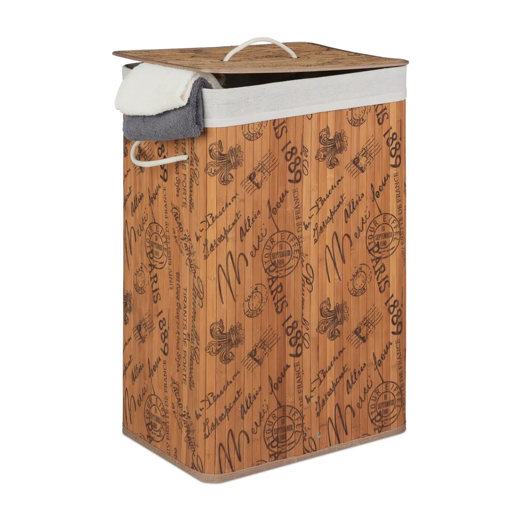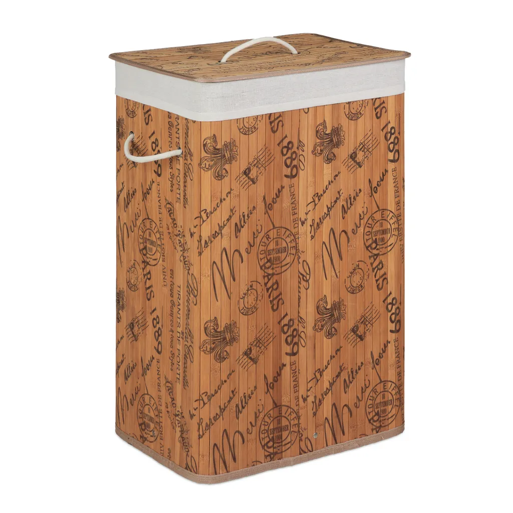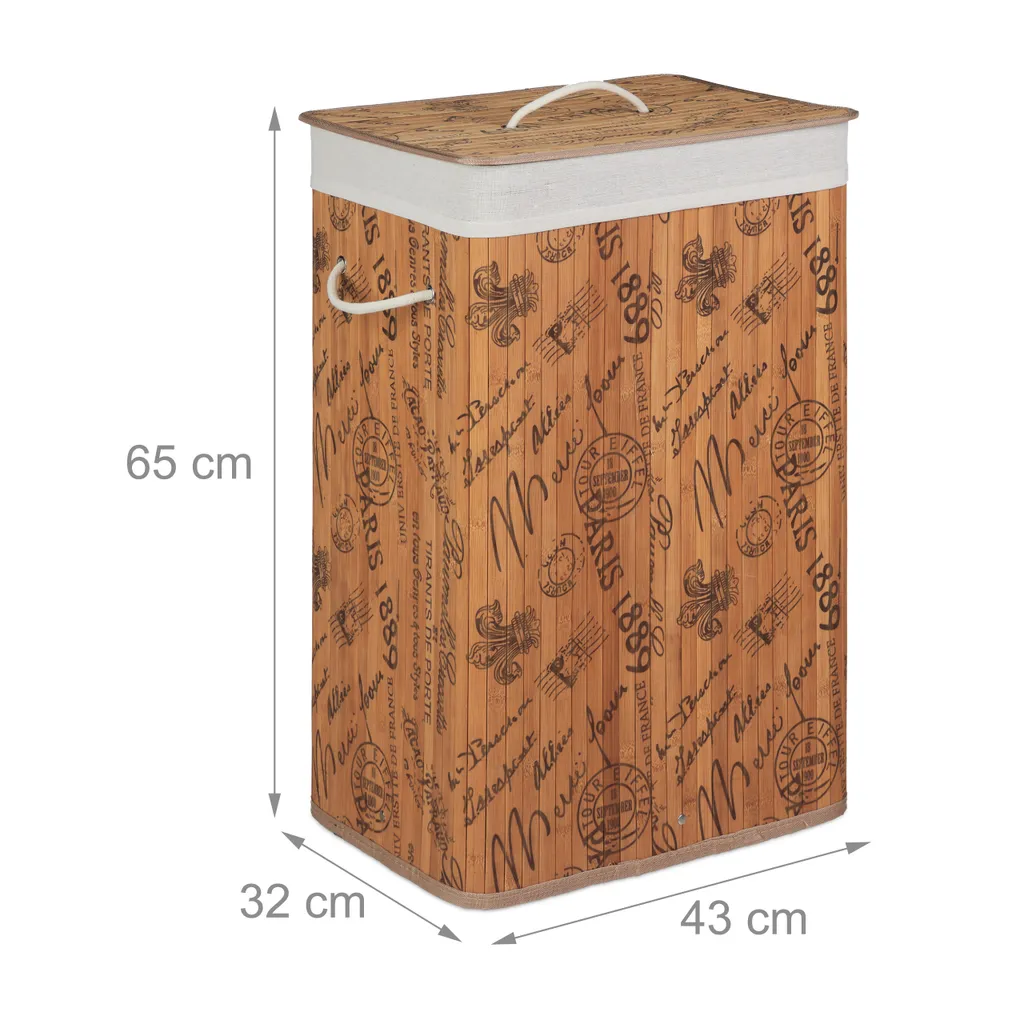 Vermeiden Sie herumliegende Wäscheberge und holen Sie sich diesen großen Wäschekorb aus Bambus nach Hause. Die Bambus Wäschebox mit dekorativen Print-Motiv. Ob im Bad, im Keller, im Schlaf- oder Kinderzimmer, die dekorative Wäschesammelbox passt in nahezu jedes Interior. Der abnehmbare Deckel der praktischen Wäschetonne schützt vor neugierigen Blicken. Mit wenigen Handgriffen können Sie den Wäschesammler zusammenfalten und verstauen. Der Wäschesack ist bei Bedarf herausnehmbar.