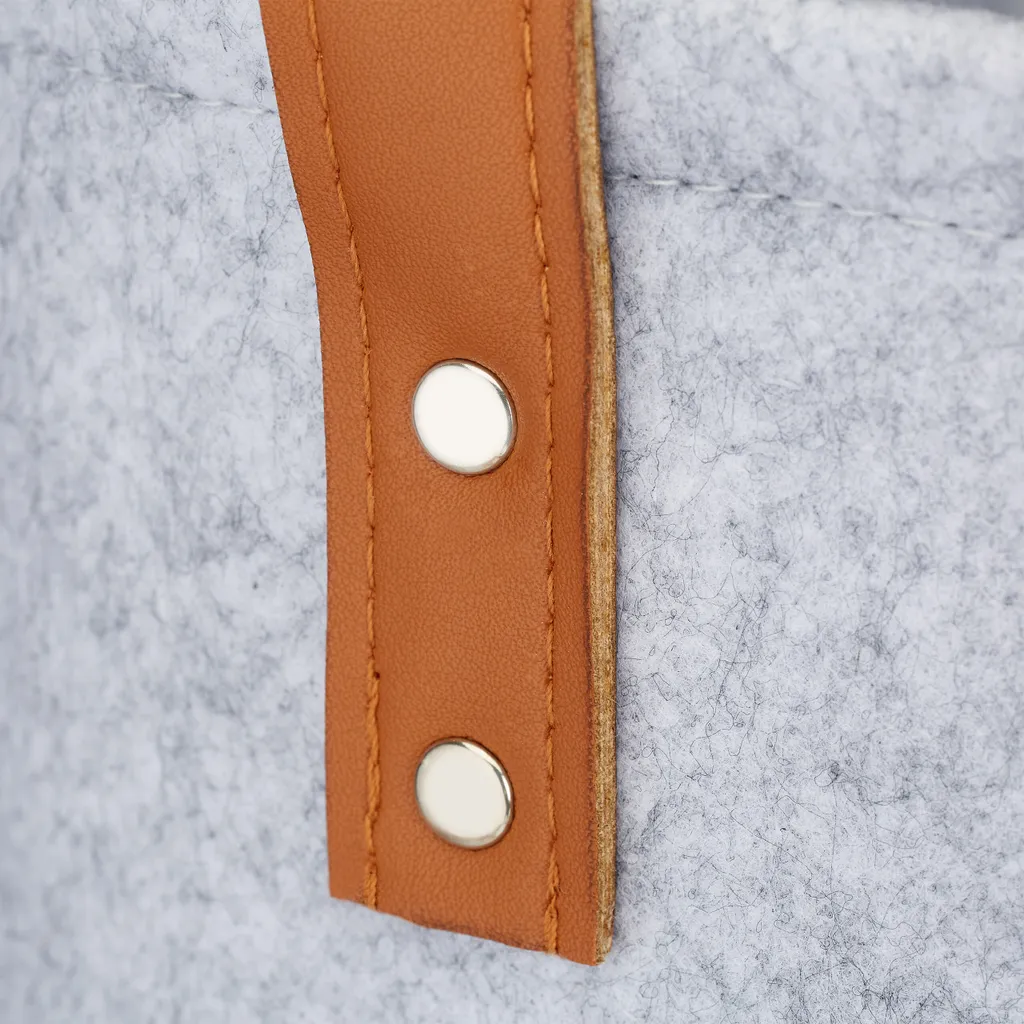 Der Wäschekorb eignet sich ideal, wenn sich bei Ihnen Zuhause Wäsche in verschiedenen Räumen ansammelt. Dank der Henkel in Lederoptik können Sie den Wäschesammler mit Inhalt problemlos zur Waschmaschine und zurück tragen – Herunterfallende Kleidungsstücke von Klamottenbergen sind so kein Problem mehr. Das moderne Design des Filzkorbs ist auch ideal, wenn Sie diesen zur Aufbewahrung nutzen wollen – Spielzeug und Kuscheltiere oder Kissen und Decken für das Wohnzimmer finden hier Ihren Platz.